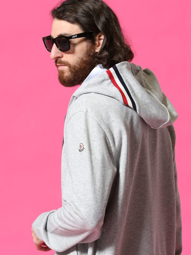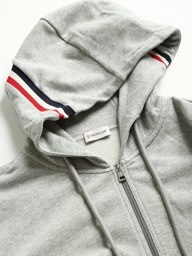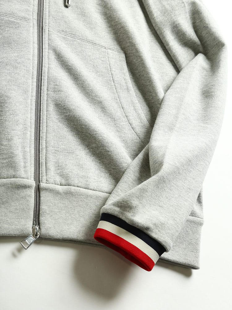 ・トリコロールラインデザインのフードがアクセントになったフルジップ 長袖 パーカー