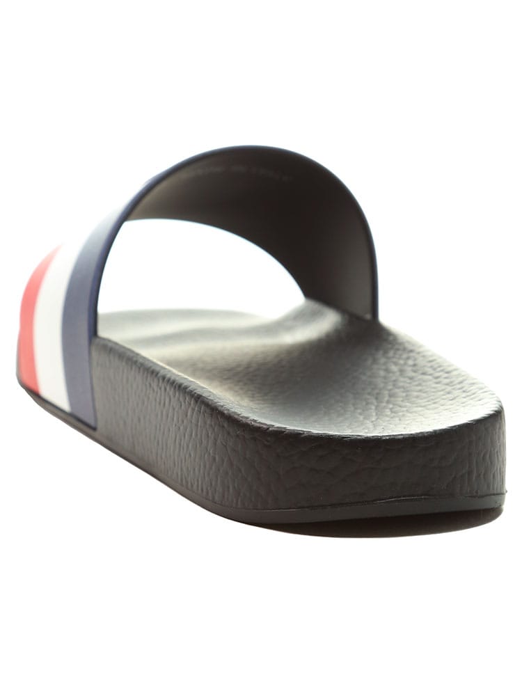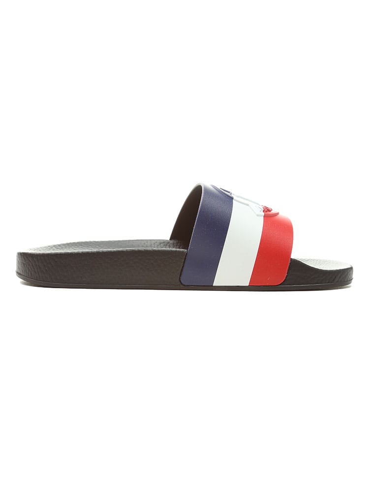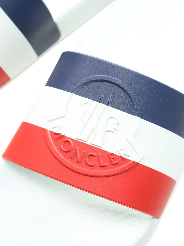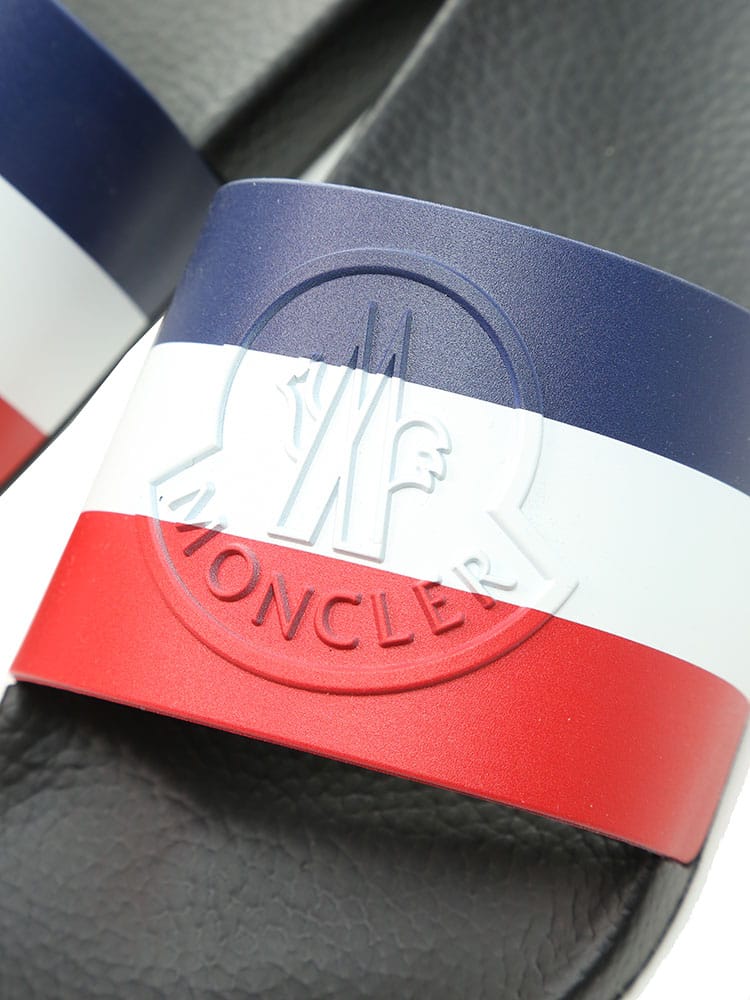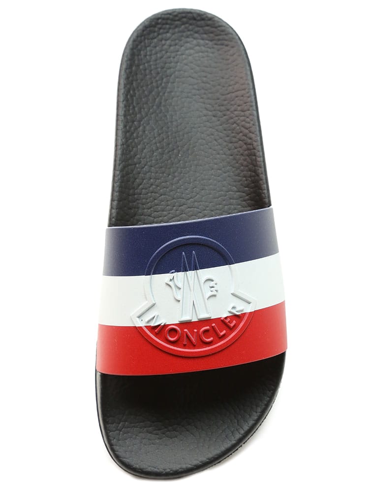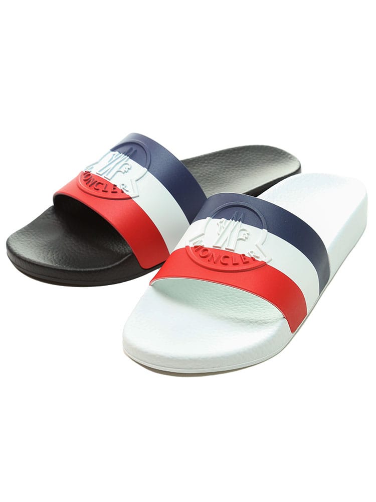 Monclerの定番デザインのBasileサンダルは、アイコニックなトリコロールのストラップが目を引きます。履きやすく実用的なスライドサンダルは、夏のバカンスには必ず持って行きたいアイテムです。