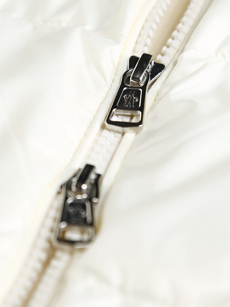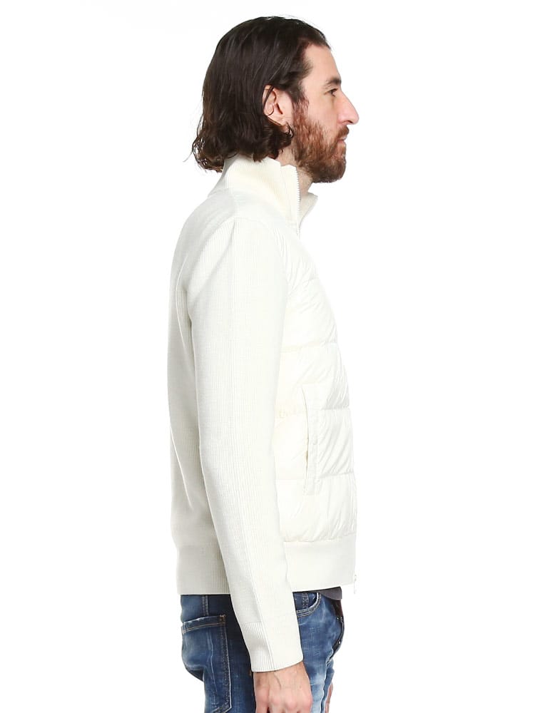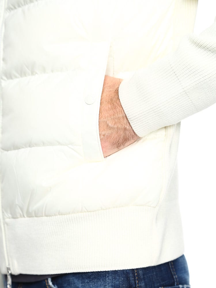 ・極細ウール素材を使用・ロングセゾン素材の裏地・ダウンパディング入り・ブリオッシュ編み・ゲージ7・ジッパークローズ・前面にボタン留めポケット付・ロゴ入り