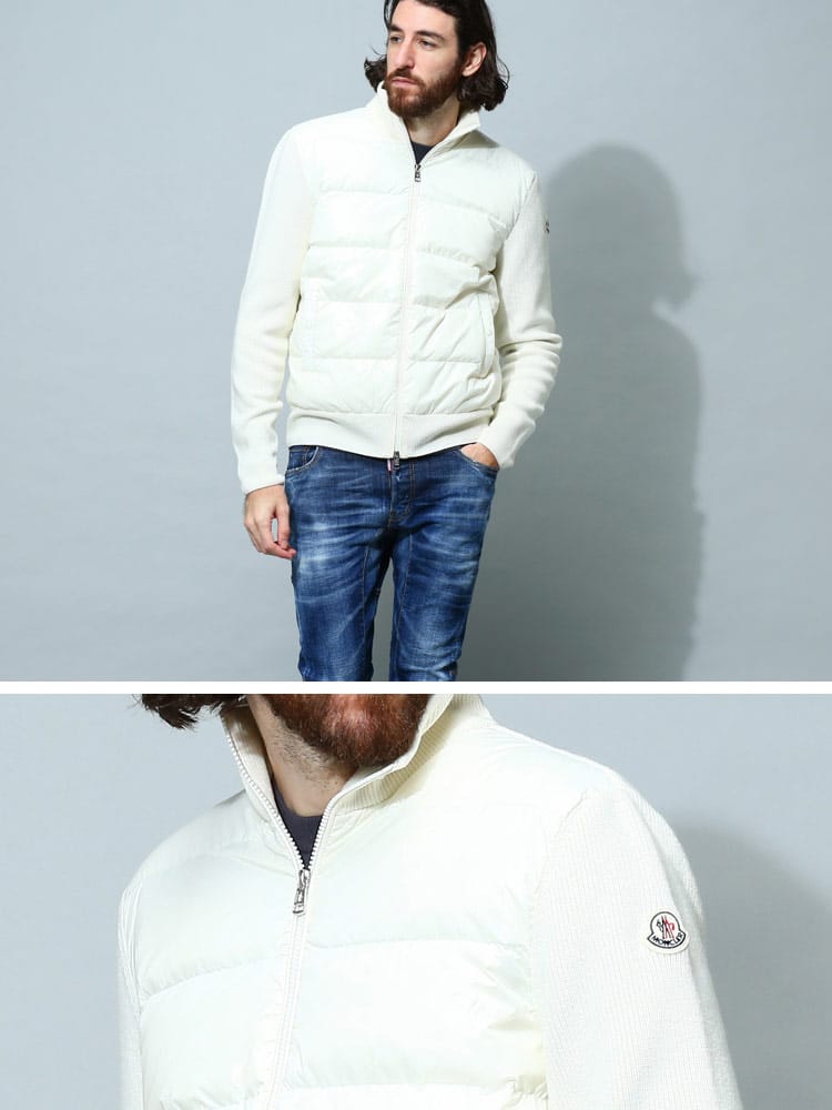 2022年秋冬新作のモンクレール ダウン切り替えニットアウターです。季節の変り目の定番として、ウール素材のカーディガンはモンクレールの人気アイテムです。前面に高級ダックダウン90%配合のパディングをし、保温性にとても優れていて軽いのが嬉しいポイント。シンプルなデザインで毛玉になりにくいので、飽きる事なく秋口~春先まで長くお使い頂けます。コートやジャケットのインナーダウンとしてもピッタリですね。レギュラーフィットですので、普段のサイズでお選びくださいね。(スタッフS)
