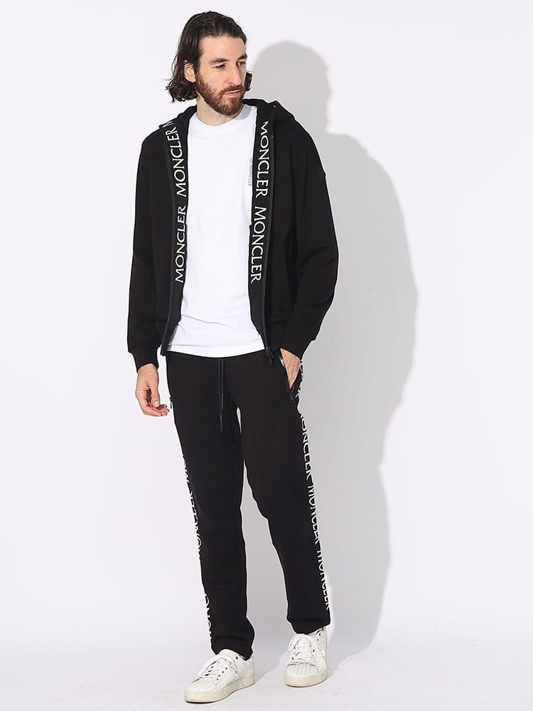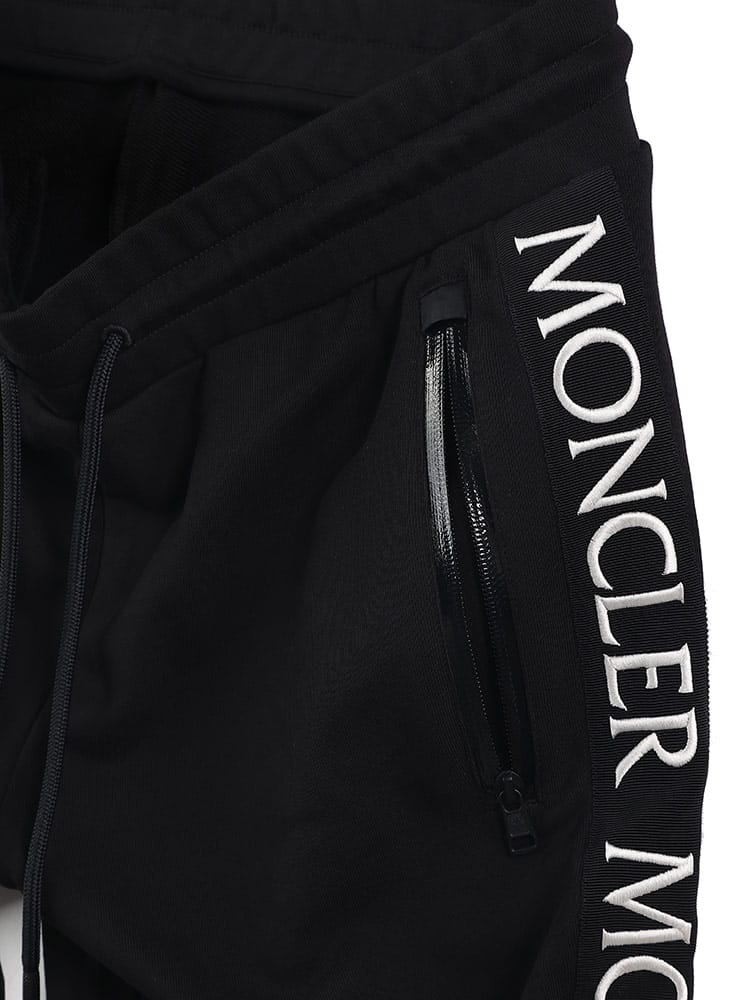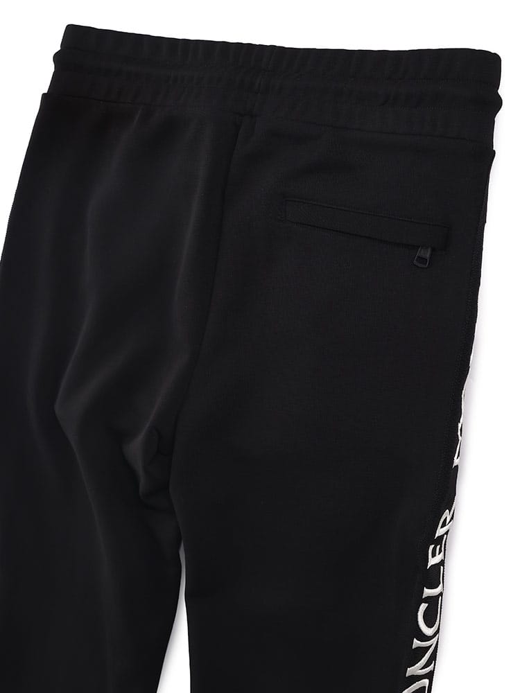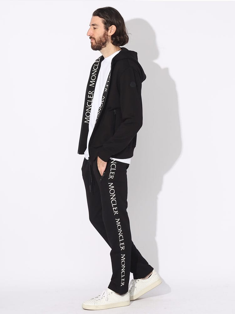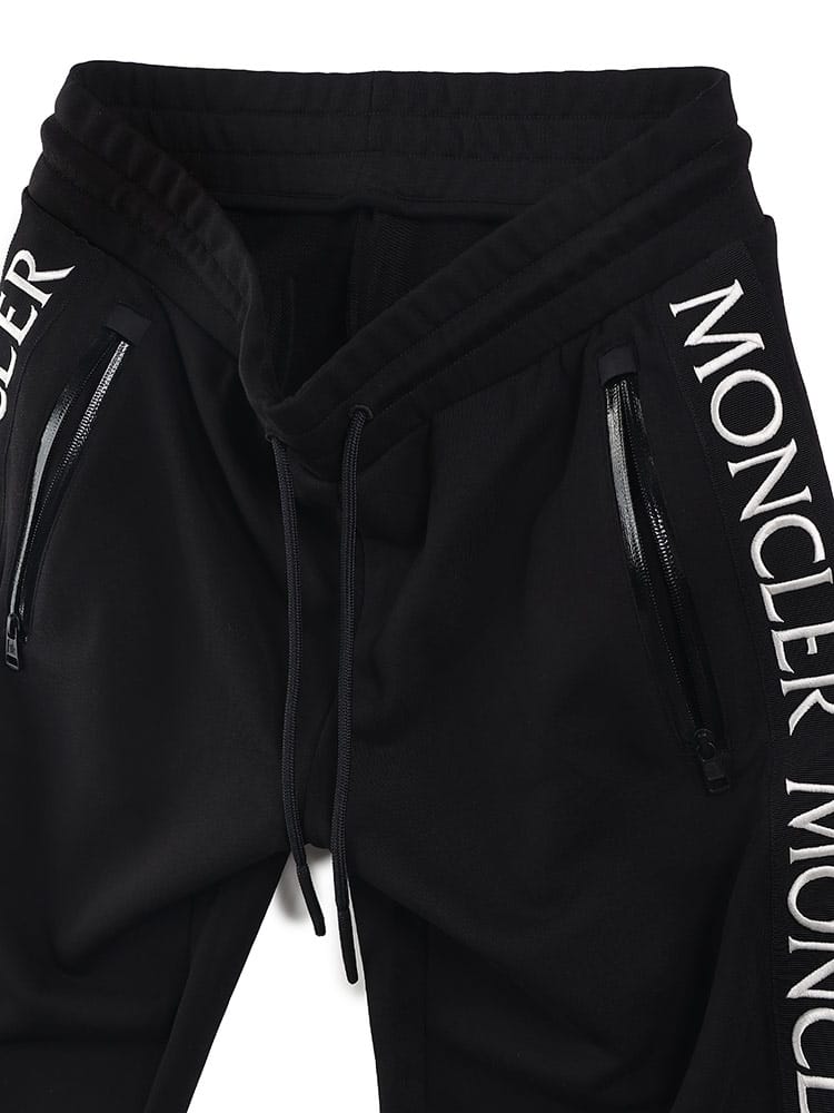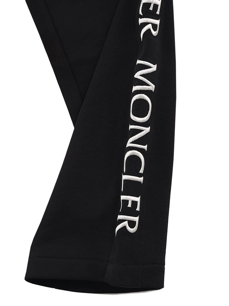 ソフトなコットンフリース素材にグログラン素材のサイドバンドで縁取りし、脚に沿って繰り返しロゴレタリングを入れています。エラスティックなウエストバンドで心地よさを増したデザインです。