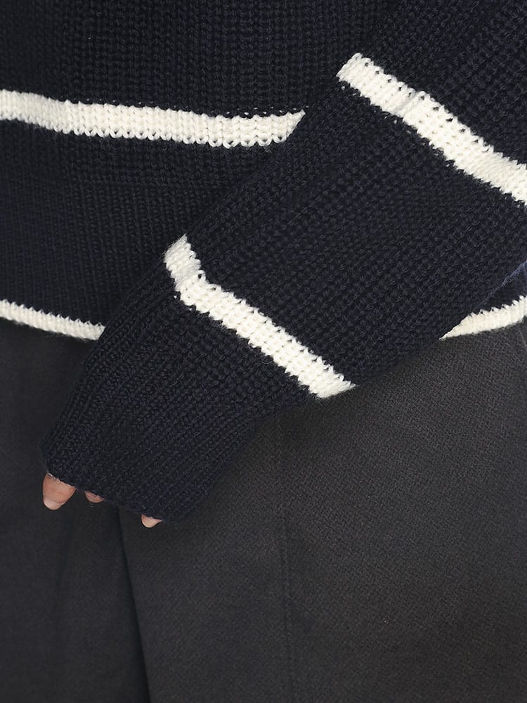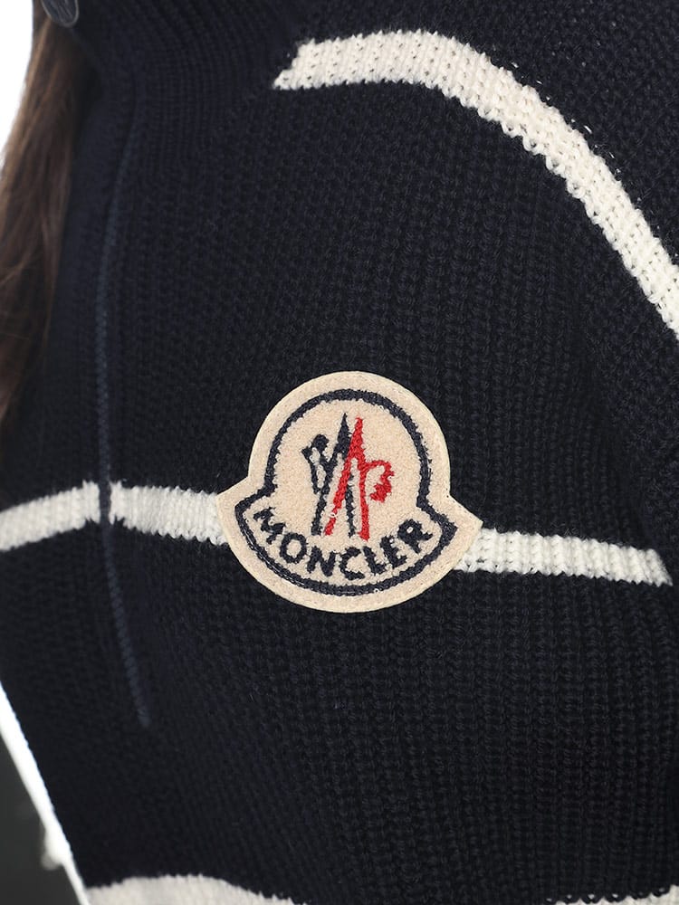 定番アイテムをアップデートしたストライプ入りタートルネックセーターは、極めて柔らかなメリノウール素材を使用しています。ストライプ入りのセーターには、テリークロス素材で仕上げた、アイコニックなMonclerロゴ入りパッチがあしらわれています。