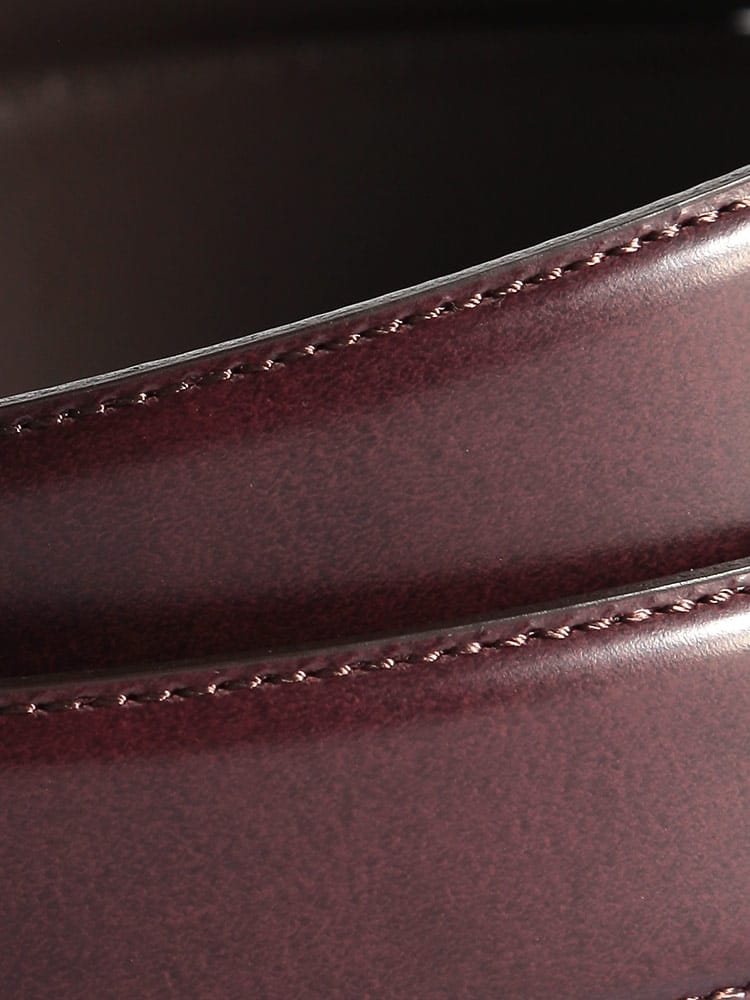 ガラスレザー調の光沢のある質感が魅力的なピンバックル ベルト。本革を使用し、高級感漂うアイテム。落ち着いたカラーリングでどんなスタイルにも取り入れられるのも魅力です。噛み合わせ留めタイプでベルトの長さ調整可能です。プレゼントとしてもおすすめです。