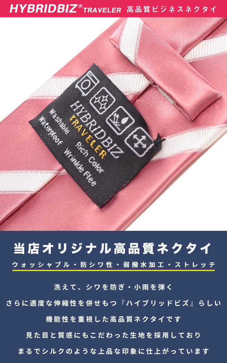 洗える防シワストライプネクタイは、ビジネスシーンに爽やかさと清潔感を与える一本です。弱撥水加工で汚れにくく、洗濯機で洗えるため、いつでも清潔な状態を保てます。シワになりにくい素材を使用し、忙しい朝もアイロンいらず。多様なストライプ柄は、スーツスタイルにアクセントを加え、洗練された印象を演出します。