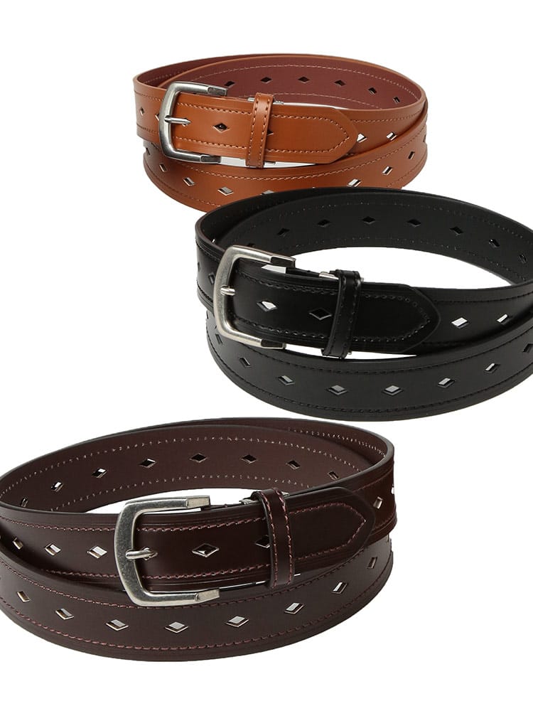 大人のカジュアルスタイルを格上げする本革 ダイヤパンチング ベルトが登場です。上質な牛革を使用しており、使い込むほどに風合いが増し、あなただけのオリジナルな一本へと育っていきます。このベルトの最大の特徴は、エレガントなダイヤパンチングのデザイン。シンプルな着こなしにさりげない個性をプラスし、洗練された印象を与えます。また、飽きのこないデザインなので、どんなコーディネートにも合わせやすく、長く愛用していただけます。噛み合わせ留めタイプなので、ご自身のウエストに合わせて簡単に長さを調節できるのも嬉しいポイント。大きいサイズの男性にも安心して着用いただける、長尺仕様です。デニムやチノパンといったカジュアルなボトムスはもちろん、きれいめなスラックスと合わせてもおしゃれに決まります。
