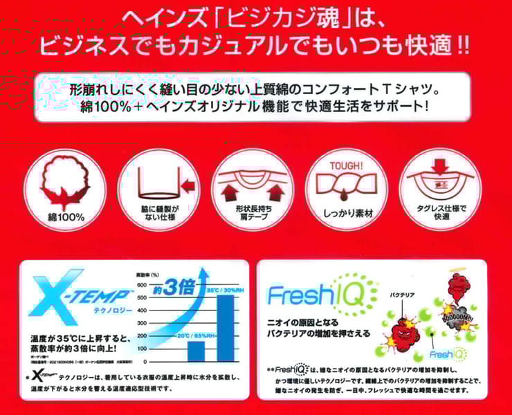 仕様 :クルーネック / 抗菌防臭 / X-TEMP
