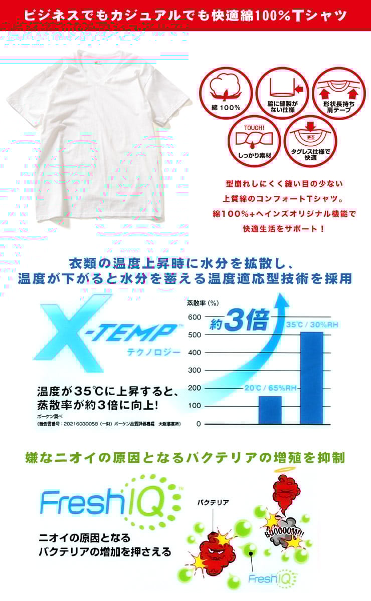 仕様 :Vネック / 抗菌防臭 / X-TEMP / タグレス / 形状長持ち肩テープ / 2枚セット