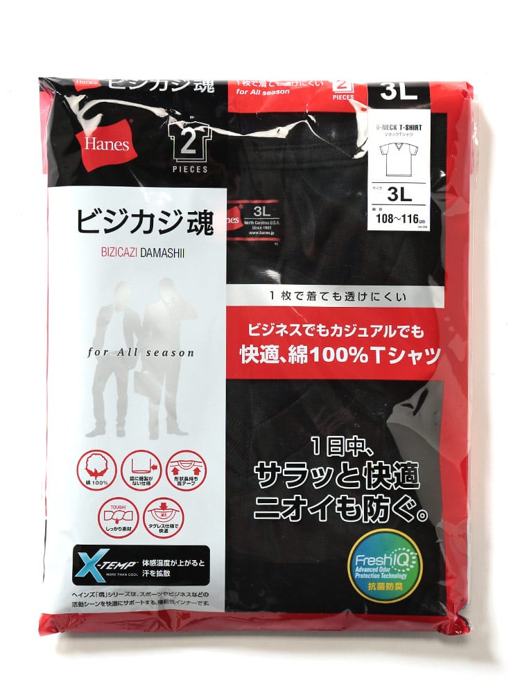 大きいサイズ メンズ Hanes (ヘインズ) 通年肌着 ビジカジ魂 綿100% 抗菌防臭 Vネック 半袖 Tシャツ 2枚セット 3L 4L INALL