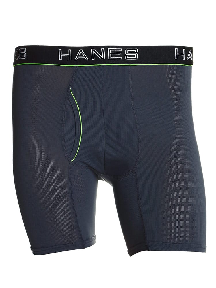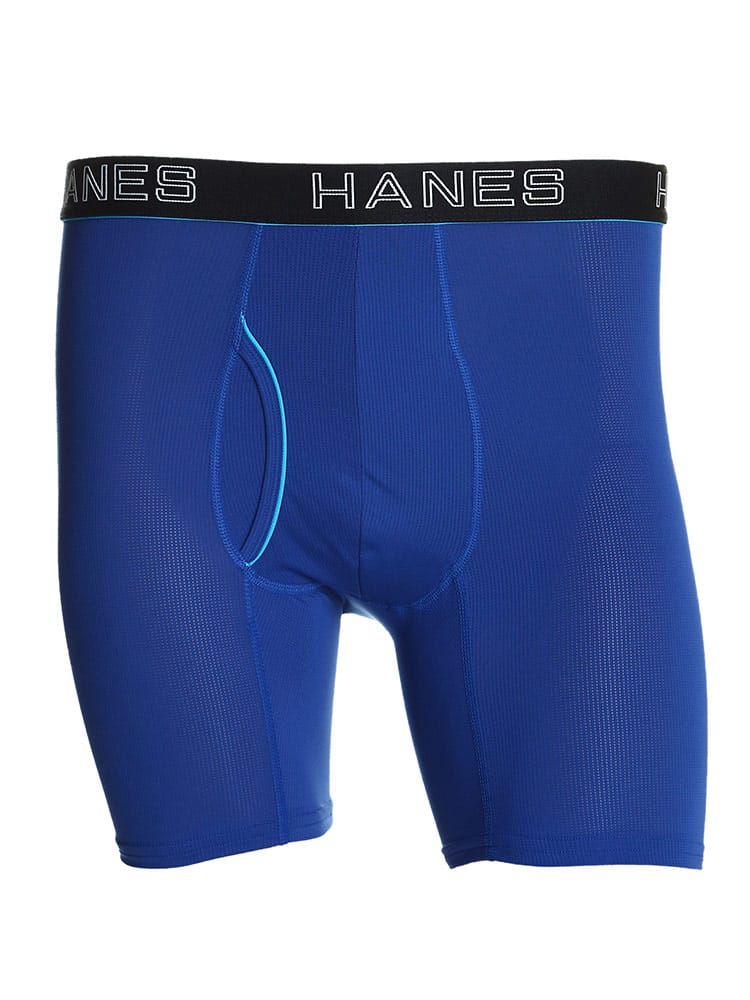 快適な着用感のHanesのメッシュ 前開き ボクサーパンツ。ウエストゴムのロゴデザインがアクセント。やさしいホールド感とムレない爽快感。快適な空間を作り出すカンガルーポーチ設計。ニオイを抑え一日中フレッシュな抗菌防臭。吸汗速乾でベタつかないメッシュ素材を使用しています。
