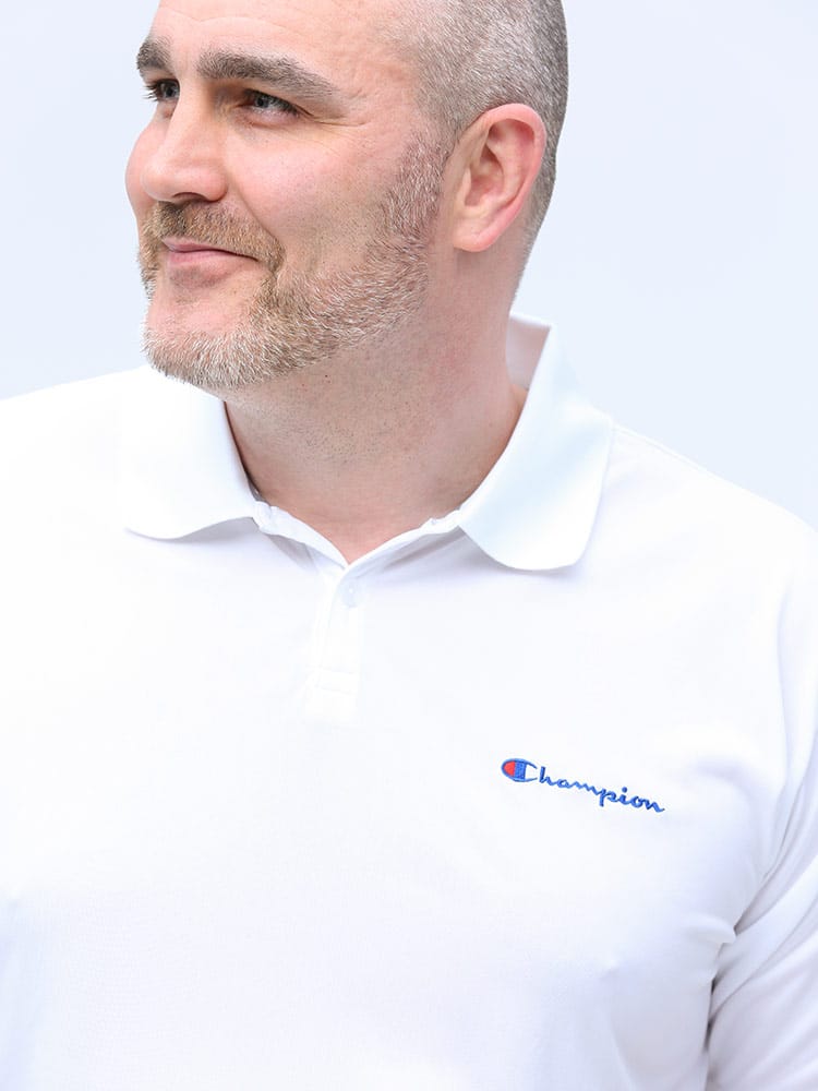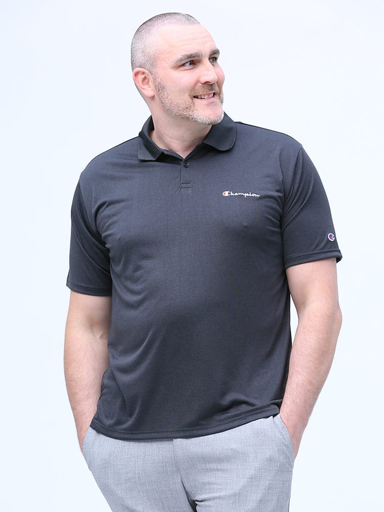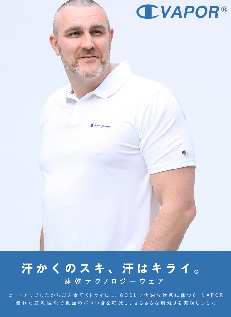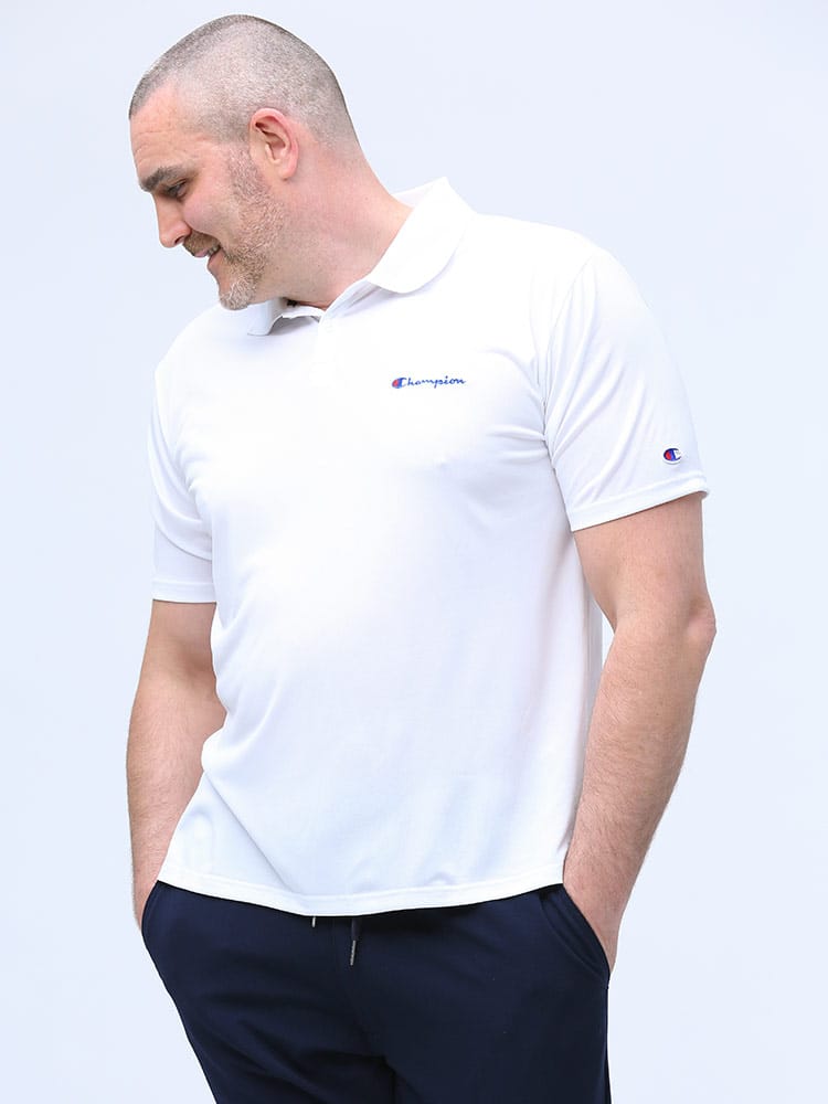 速乾と防臭機能が付いたChampionのロゴ刺繍 半袖 ポロシャツです。ベーシックなデザインに左胸のロゴがポイント。左袖にタグ刺繍。裾サイドにスリット入り。汗ばむ季節に嬉しい速乾と防臭効果で快適な着心地を提供します。