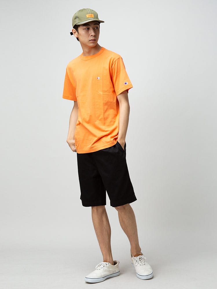 しっかりとしたコットン生地を使用したChampionのワンポイント ショートパンツです。フロント左のロゴ刺繍がポイント。ウエストはゴムとドロコード付きでサイズ調整出来ます。無地のベーシックなデザインでどんなスタイルにも取り入れていただけます。