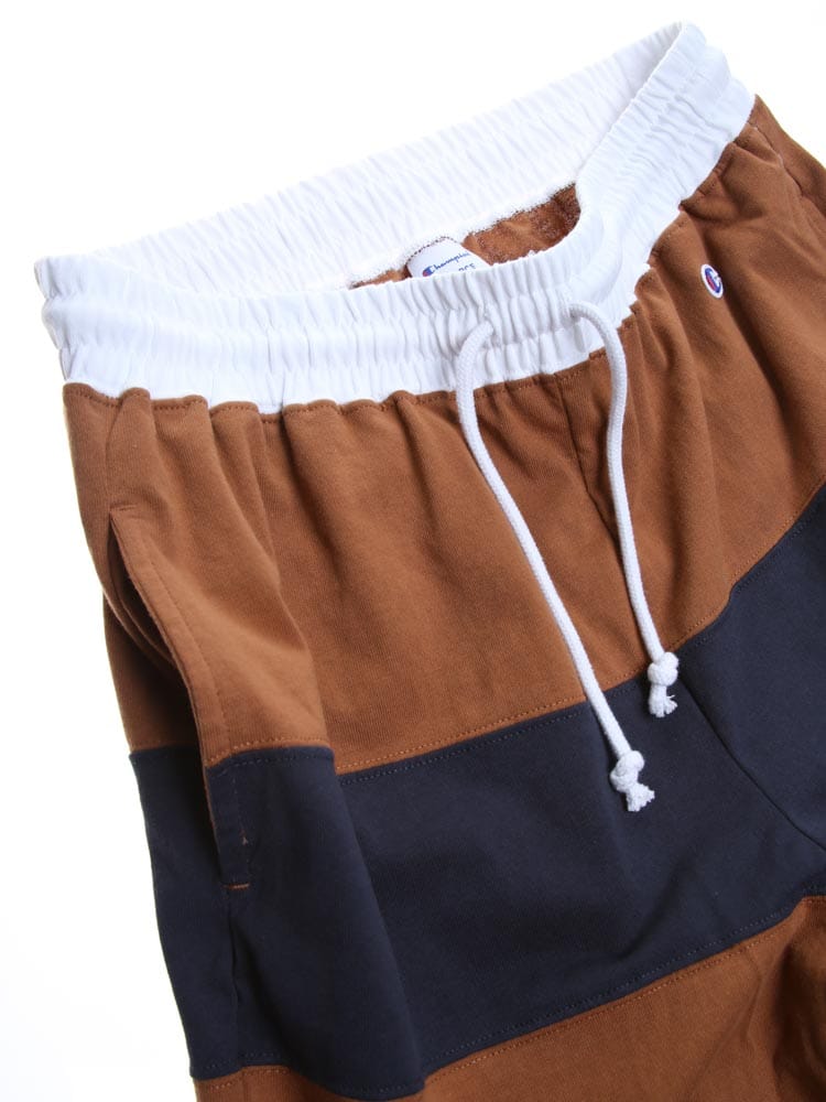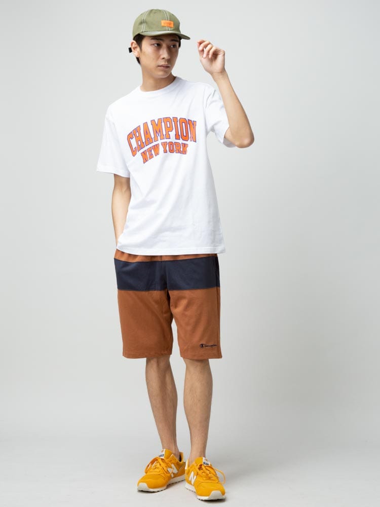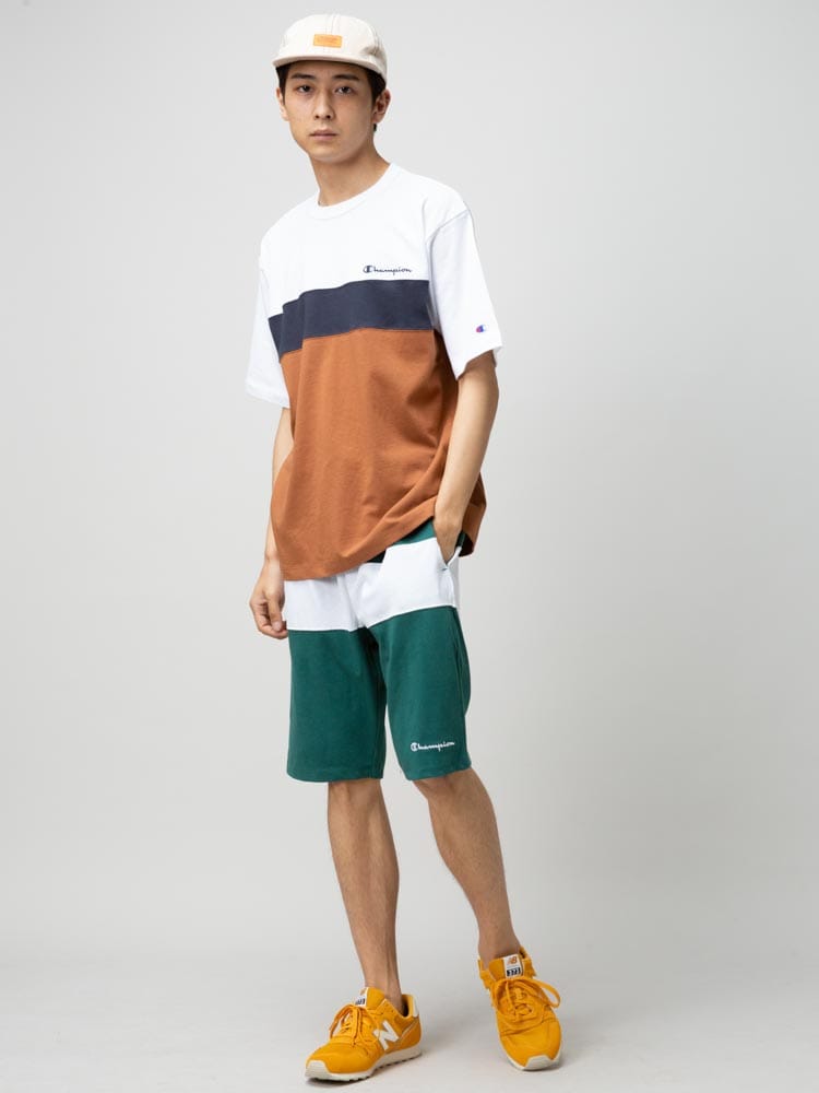 肌触りが良く、耐久性に優れたUSAコットンを使用したChampionのパネル切り替え ショートパンツです。パネル切り替えデザインがお洒落なアイテム。フロント左にロゴを刺繍。ウエストはゴムとドロコード付きでサイズ調整出来ます。