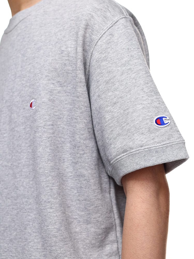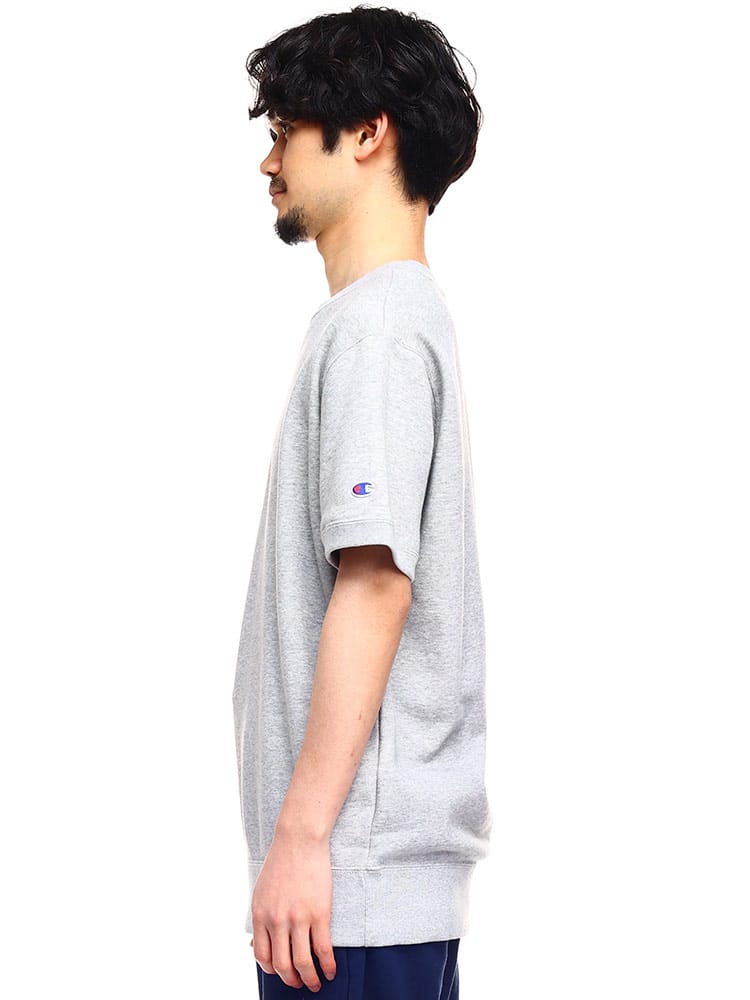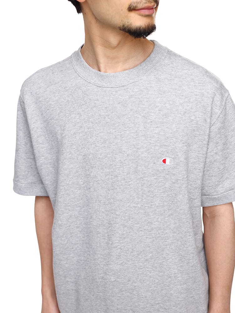 環境に配慮して生産されたサスティナブルなアメリカ綿「コットンUSA」に、同じく環境に配慮されたリサイクルポリエステルをブレンドした裏毛素材のショートスリーブクルーネックスウェットシャツです。ポリエステル糸を芯としてその周りをコットンでカバーする特殊な糸を部分的に使用しているので、肌触りの良いコットンの風合いを活かしつつ、コットン100%に比べて乾きやすく型くずれしにくいのが特長です。シーンやシーズンを選ばず着用できるユーティリティアイテム。