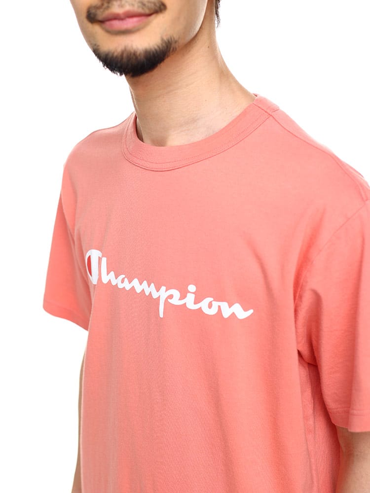 環境に配慮して生産されたサスティナブルなアメリカ綿「コットンUSA」を100%使用した、しっかりとした天竺素材のショートスリーブTシャツです。フロントにブランドカラーのChampion(チャンピオン)ロゴプリント入り。日常に取り入れやすいシンプルなデザインで、シーンやシーズンを選ばず着用できるユーティリティアイテムです。オーセンティックアメリカンアスレチックウェアのChampion(チャンピオン)らしいバインダーネック仕様もポイント。製品洗い加工により、着用の当初から着慣れた風合いが味わえます。