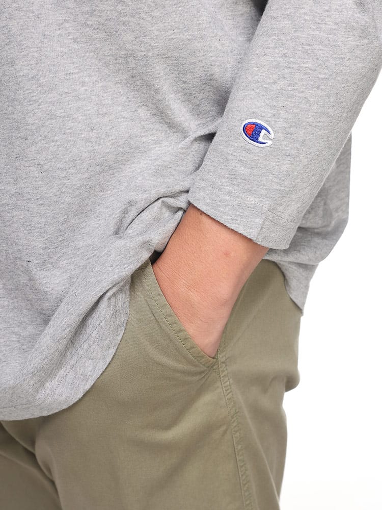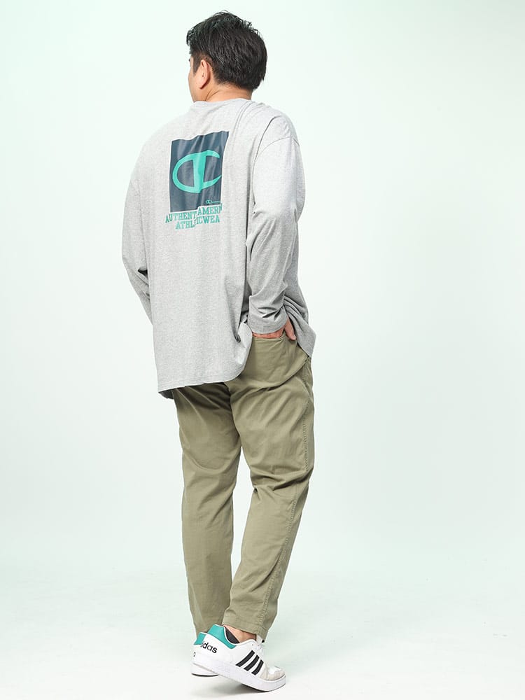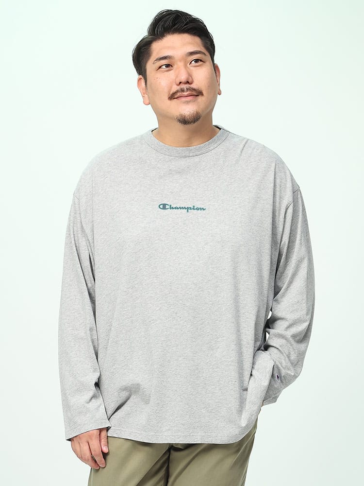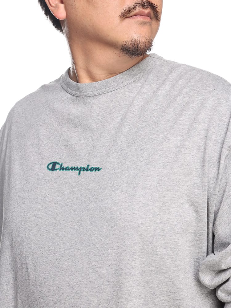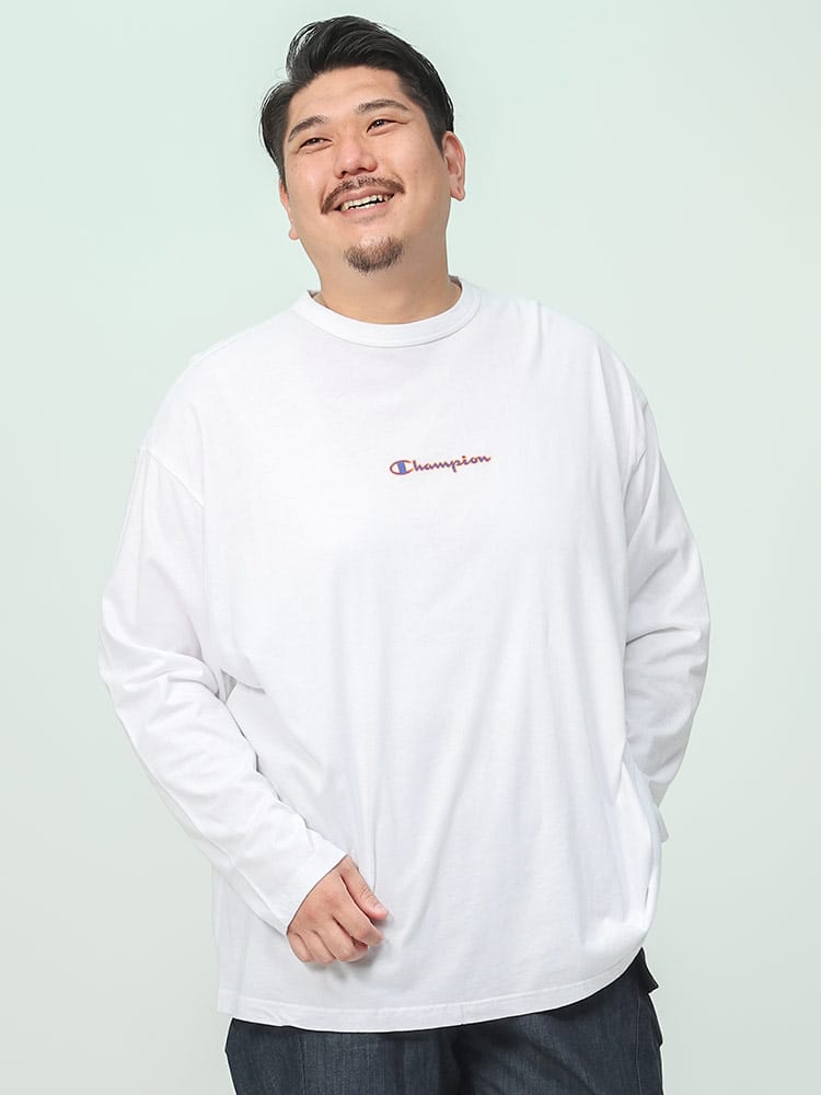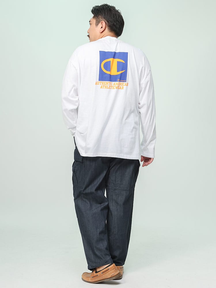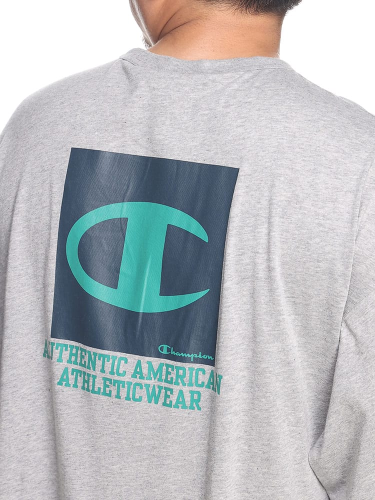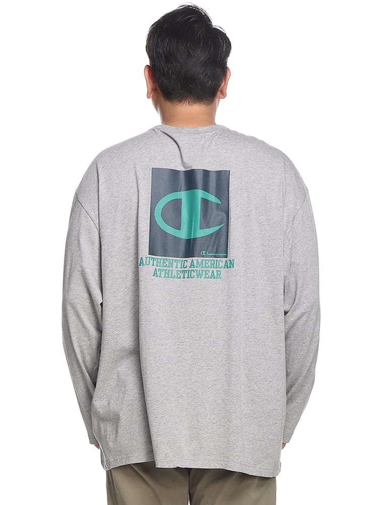 チャンピオンの長袖Tシャツは、上質なUSAコットンを採用し、柔らかく快適な着心地を実現しています。フロントにはブランドのロゴプリント、背面にはボックスデザインのロゴが大胆にプリントされており、シンプルながらも存在感のあるデザインが特徴です。