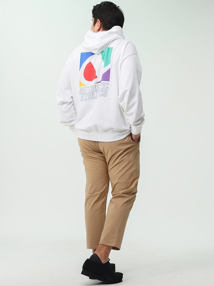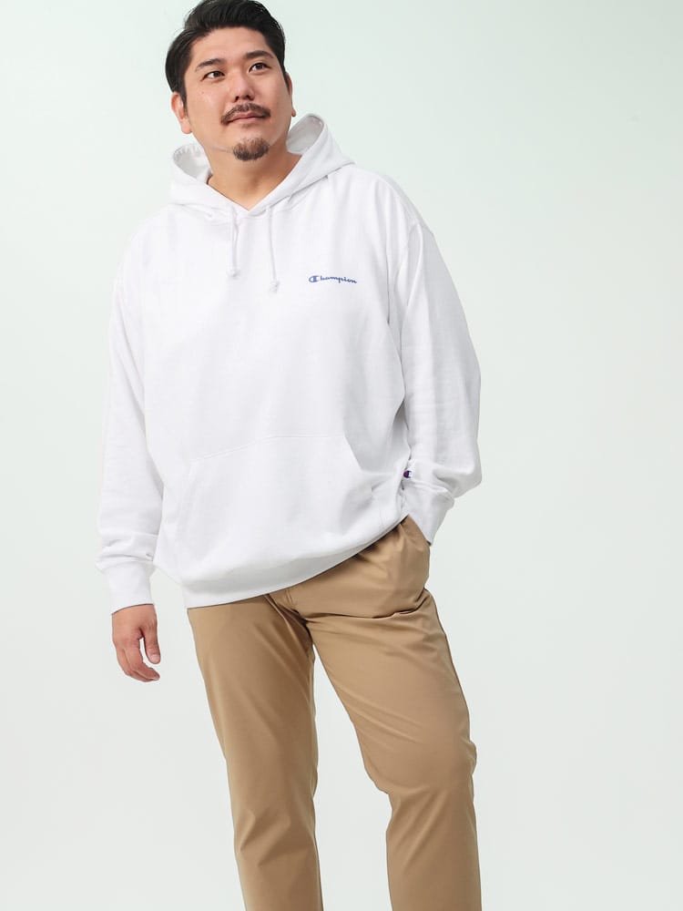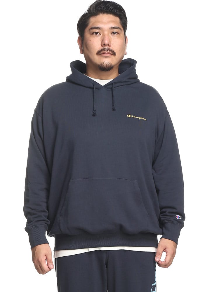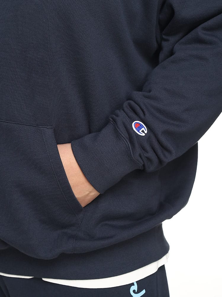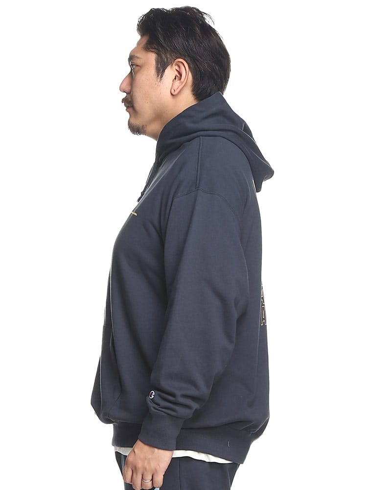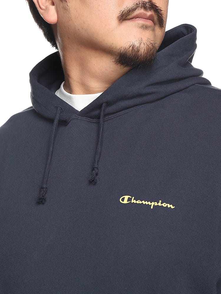 環境に配慮して生産されたサステナブルなアメリカ綿「コットンUSA」70%とリサイクルポリエステル30%の裏起毛素材を使用。コットンの肌触りの良さとポリエステルの汎用性を活かしたフーデッドスウェットシャツです。チャンピオンブランドの歴史の中で、多くのカレッジやチームのウェアとして使用され、支持されてきたプリントデザインを現代に落とし込んだアイテムです。左胸にはChampionロゴ、背中にはCロゴをボックスに斜めにはめ込んでマルチカラーでデザインしたグラフィックをプリントしています。