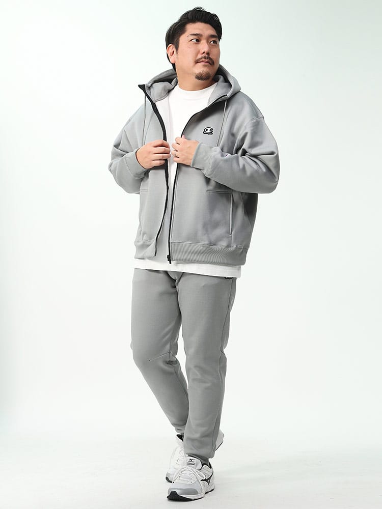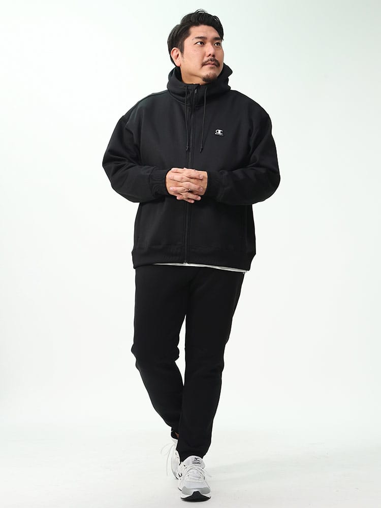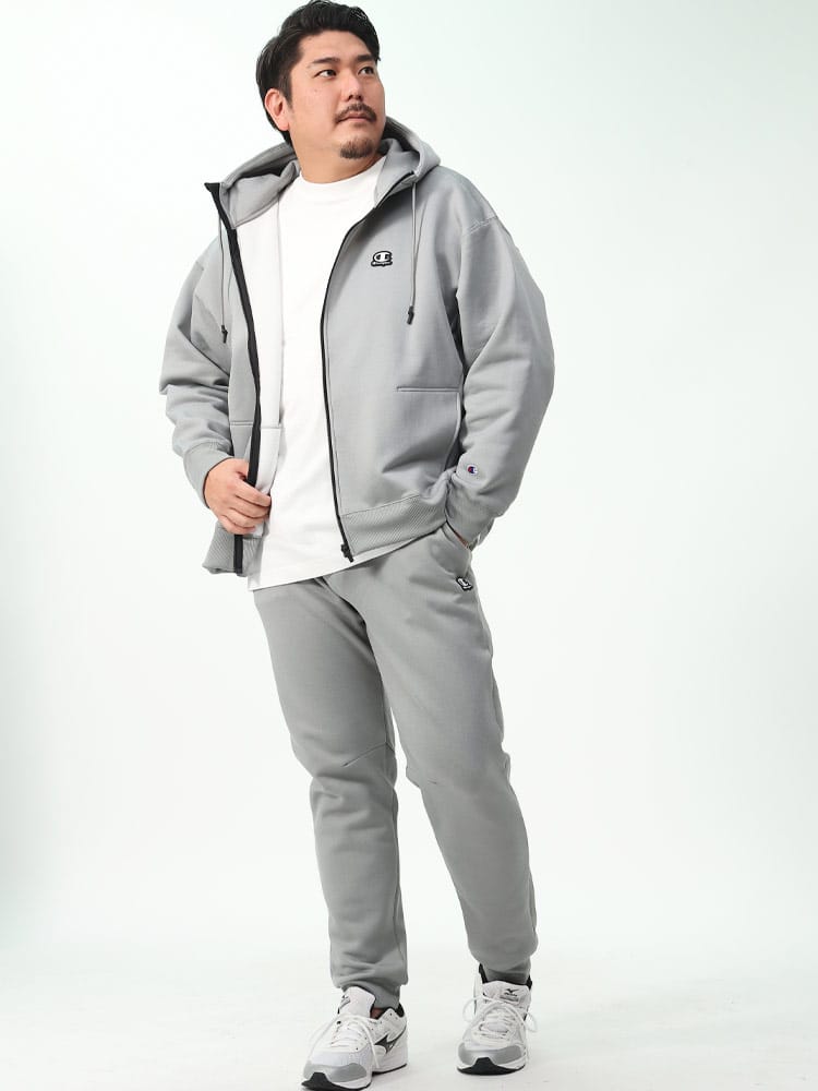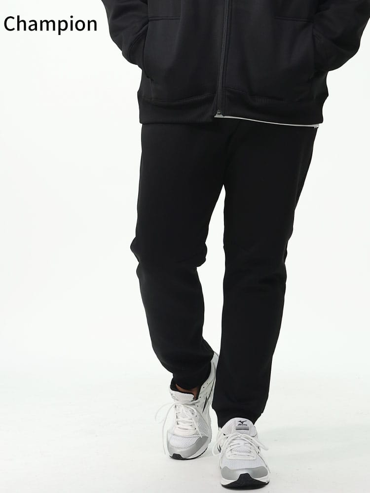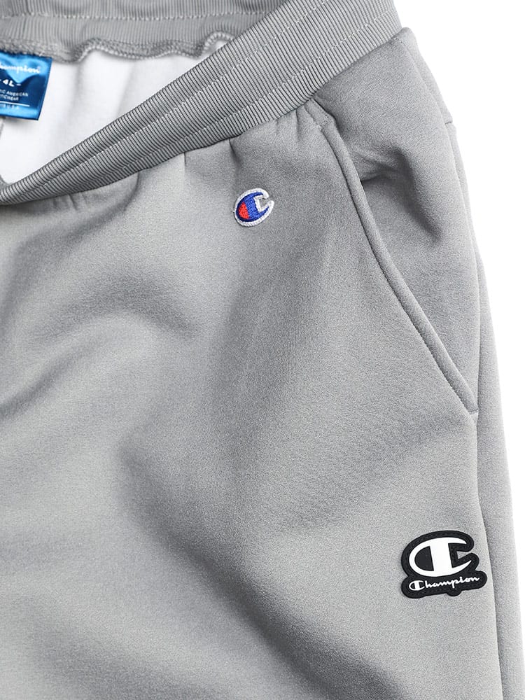 ポリエステルにナイロンとポリウレタンをブレンドすることで軽量性とストレッチ性を高め、裏面を起毛した保温性に優れた生地を使用したTECH WEAVE(テックウィーブ) テリー スウェットパンツです。左前腿にCロゴとChampionのコンビネーションロゴのワッペンを付けています。
