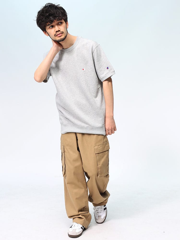 Championの裏毛ワンポイントロゴ入り無地クルーネック半袖スウェットTシャツは、快適性とスタイルを兼ね備えたアイテムです。柔らかな裏毛素材を使用し、日常のリラックスウェアに最適。シンプルながらも、左胸にあしらわれた小さなChampionロゴがアクセントに。どんなカジュアルスタイルにも合わせやすいデザインで、長く愛用できる一枚です。