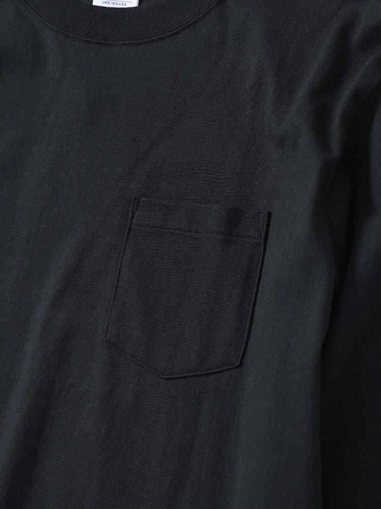 環境に配慮して生産されたサステナブルなアメリカ綿を100%使用した、しっかりとした天竺素材のロングスリーブポケットTシャツです。シンプルながらモダンなデザインで、シーンやシーズンを選ばず着用できるユーティリティアイテムです。製品洗い加工により、着用の当初から着慣れた風合いが味わえます。