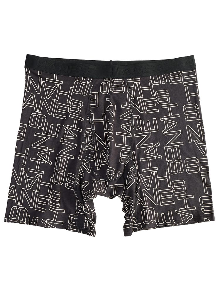 独自のカンガルーポーチ設計による、優しいホールド感とムレない爽快感。レーヨン混のストレッチ素材で着用時の蒸れを軽減、安定感と通気性に優れたストレスフリーのはき心地が特長のコンフォート フレックスフィット ボクサーブリーフです。太腿部分の汗もしっかりと吸収する股下丈設定もこだわりのポイント。ニオイの発生を抑制する「Fresh IQ(フレッシュ アイキュー)」加工により1日中快適なHanes(ヘインズ)を代表する高機能ボクサーブリーフ。「HANES」のグラフィックをモノグラム調に配置した総柄プリントデザインです。ウエストゴムに「HANES」と入れました。前開き仕様。
