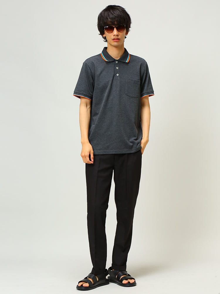ラインデザインがアクセントになったDRY 半袖ポロシャツです。襟と袖にラインデザイン。左胸にポケットを配置。吸汗速乾でドライな着心地をキープします。裾サイドに動きやすいスリット入り。カジュアルスタイルにおすすめのアイテムです。