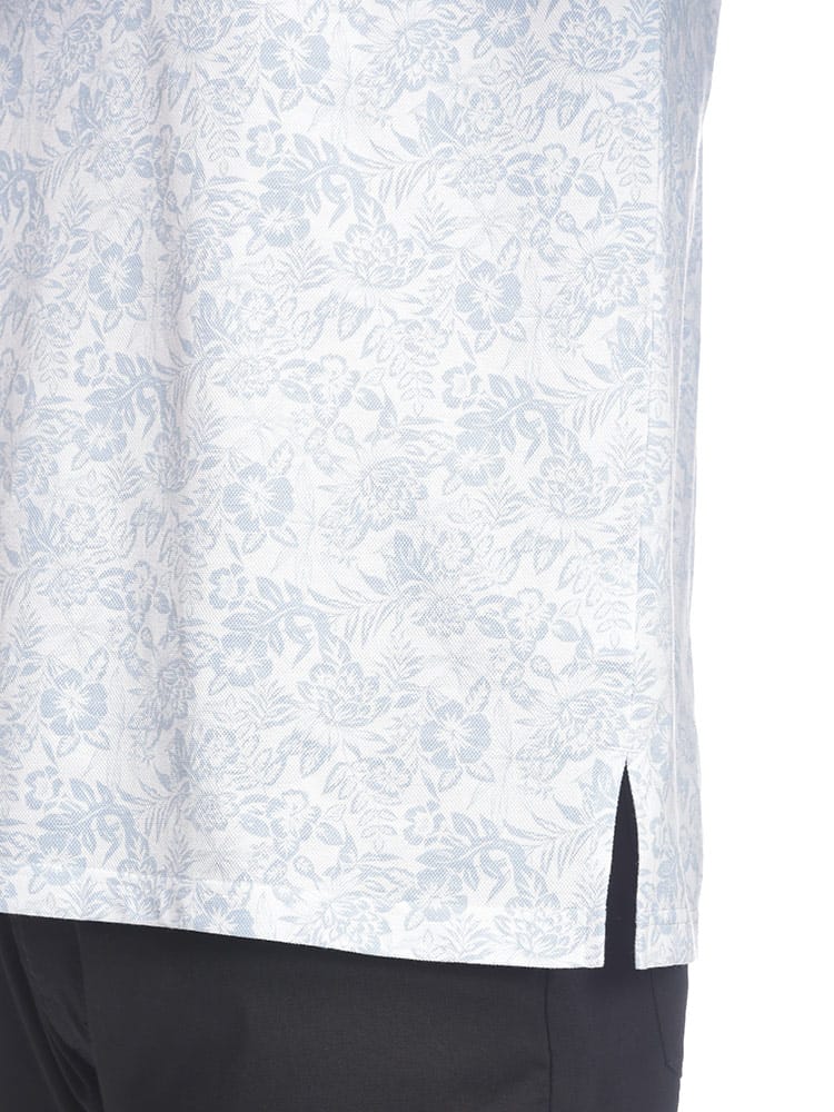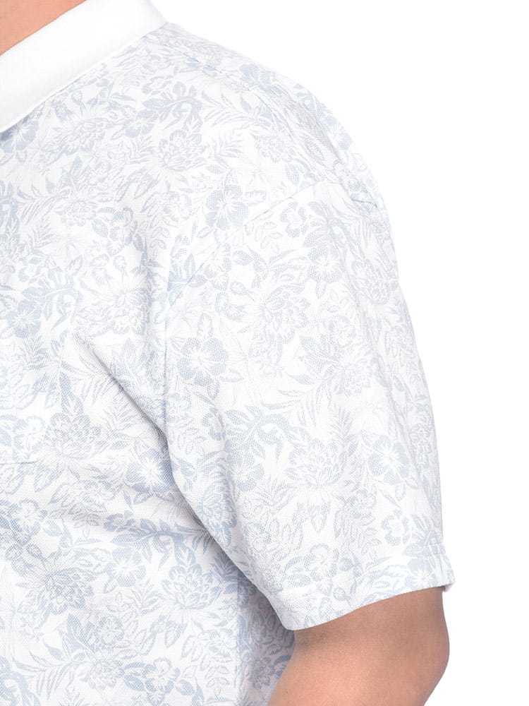 2024年春夏新作!B&T CLUBのDRY 鹿の子 フラワー総柄 半袖 ポロシャツシンプルながらもディテールにこだわった一着です。小花の総柄プリントとクレリックカラーの組み合わせがさりげないおしゃれ感を演出し、日常のスタイルにちょっとした特別感をプラスします。ポロシャツの素材には、通気性と快適性に優れた鹿の子編みを採用。吸水速乾性も備えているため、汗をかいてもすぐに乾き、蒸し暑い日でも快適に過ごすことができます。特に夏のアクティブなシーンや、リラックスしたいオフの日に最適です。クレリックカラー仕様が、首元を引き締め、全体の印象をスマートに仕上げます。また、切り替えデザインが施されているため、シンプルながらも視覚的に楽しめるアクセントを持っています。どんなボトムスにも合わせやすく、スタイリングの幅が広がるこのポロシャツは、ゴルフなどのスポーツにも最適ですよ。