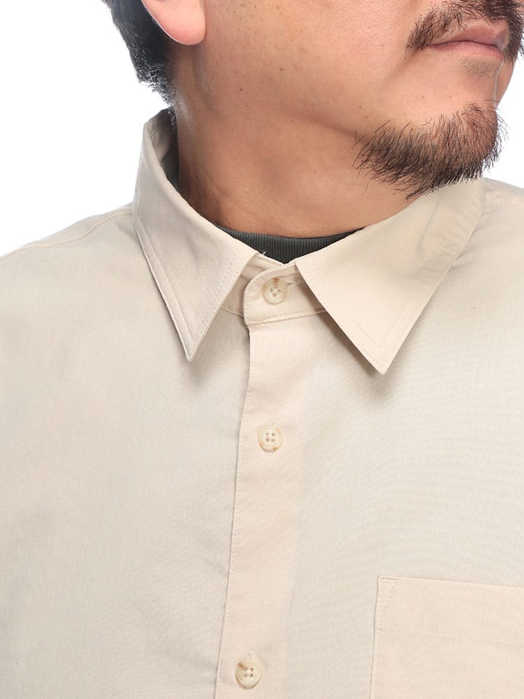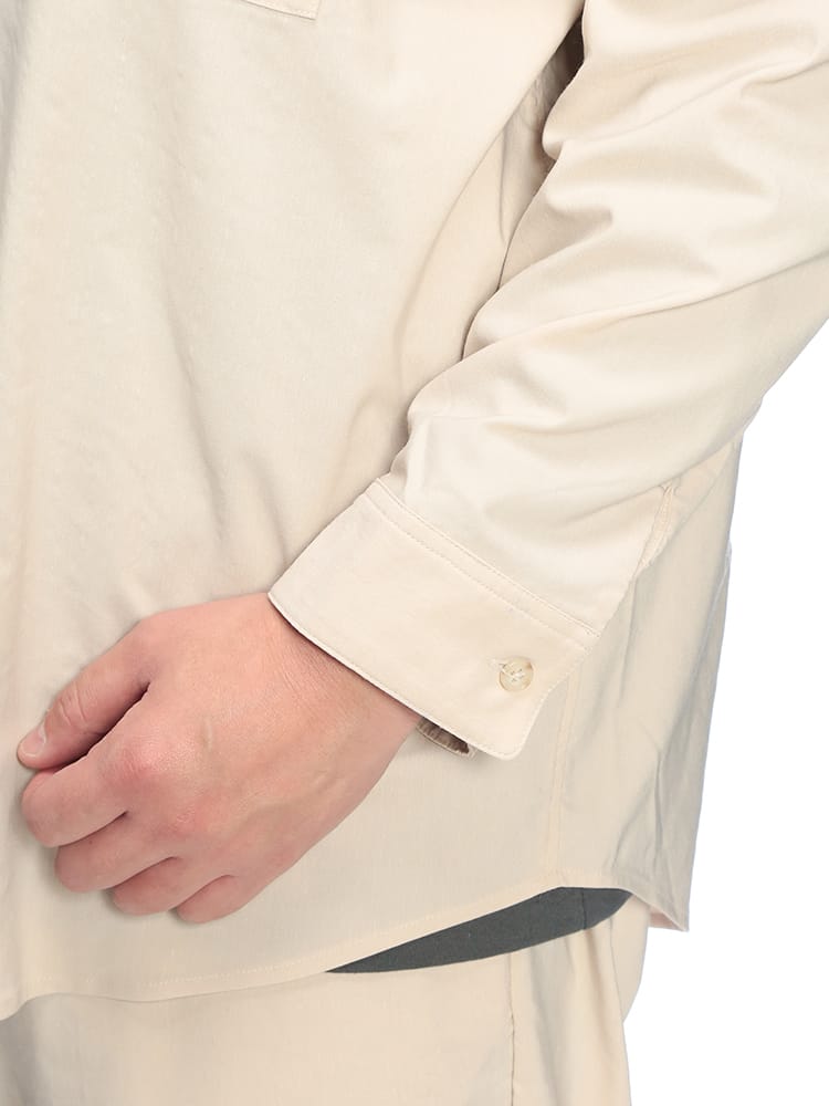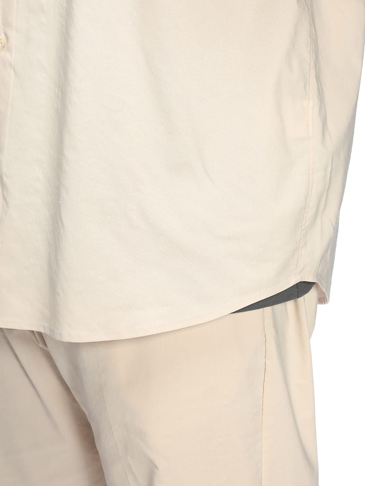 大人の余裕を感じさせる「B&T CLUB」の長袖レギュラーカラーシャツは、機能性と風合いを兼ね備えたNEO LINEN素材が魅力の一着です。リネン特有の清涼感ある表情を引き出しつつ、現代的な混紡技術によりシワになりにくく、手入れのしやすさを実現しました。程よいシャリ感と通気性があり、春夏のカジュアルスタイルを格上げする無地デザインは、羽織りとしてもインナーとしても重宝します。胸元には便利な外ポケットを配し、大きいサイズ設計で窮屈感のないリラックスした着心地を提供。洗練されたシンプルさが際立つ、デイリーユースに最適な大人の麻混シャツです。