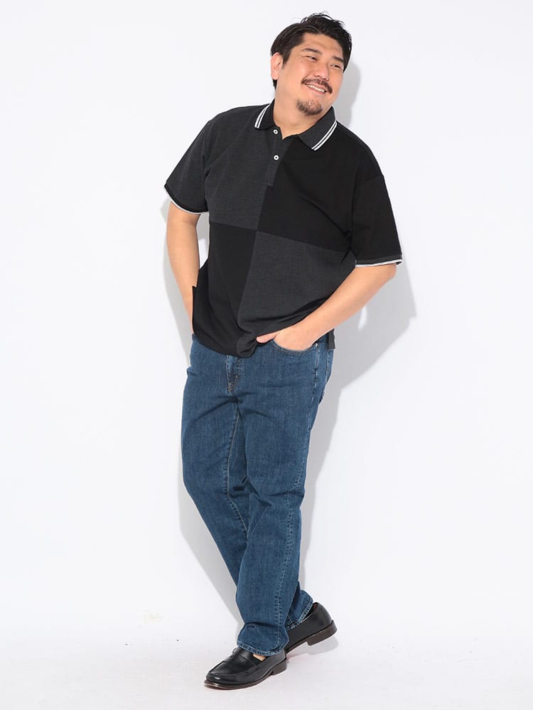 都会的でスポーティな表情を演出する「B&T CLUB」の半袖ライン切り替えポロシャツは、機能性とデザイン性を高次元で融合させた一着です。肌離れの良いドライ鹿の子素材を採用し、汗ばむ季節でもベタつきを抑えたドライな着心地をキープ。さらに消臭効果が期待できるデオドラントテープを施すことで、気になるニオイ対策も万全な清潔感溢れる仕上がりです。大胆かつ洗練された切り替えデザインと襟元のラインがアクセントとなり、大きいサイズ設計ならではのゆとりあるシルエットをスマートに引き締めます。通気性に優れた快適な着用感で、デイリーなカジュアルスタイルからゴルフなどのアクティブシーンまで幅広く活躍。大人の夏を爽やかかつダイナミックに彩る、主役級の機能派ポロシャツです。