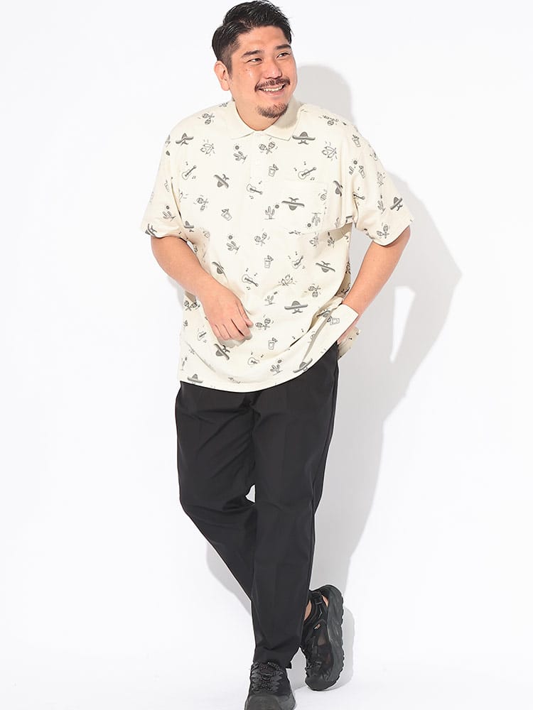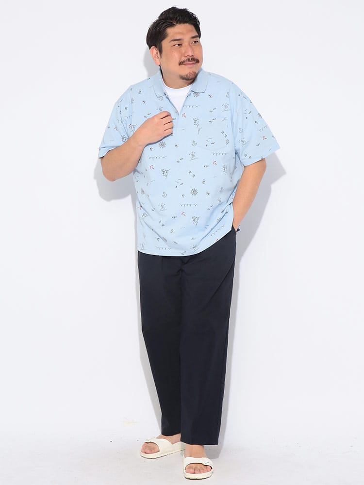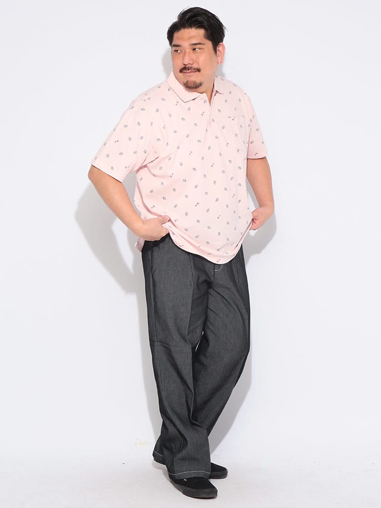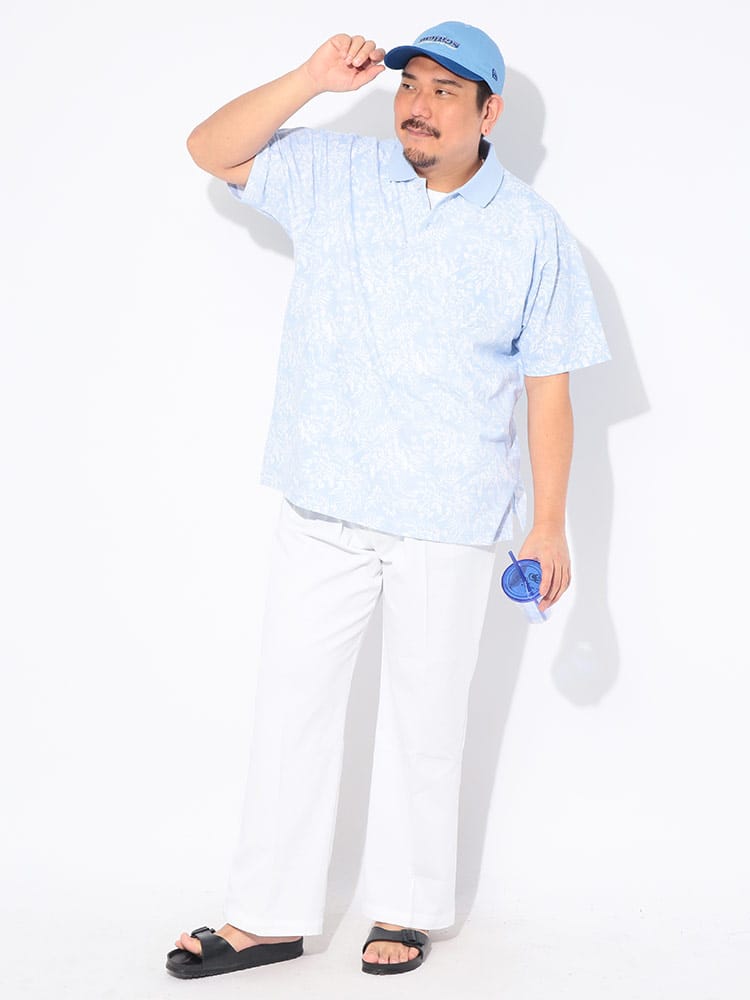 周囲と差がつくモダンなスタイルを演出する「B&T CLUB」の総柄切り替え半袖ポロシャツは、高いデザイン性と機能性を兼ね備えた春夏のマストアイテムです。肌離れの良いドライ鹿の子素材を採用し、汗をかいてもベタつきにくいドライ機能を搭載。さらにデオドラントテープを配することで、気になるニオイ対策も万全な清潔感溢れる一着に仕上げました。洗練されたプリント総柄と無地の切り替えデザインが、大きいサイズ設計ならではのゆとりあるシルエットにメリハリをプラス。便利な胸ポケットを完備し、タウンユースからゴルフなどのアクティブシーンまで幅広く活躍します。通気性と快適な着心地を両立した、大人の夏を爽やかかつ個性的に彩る主役級のポロシャツです。