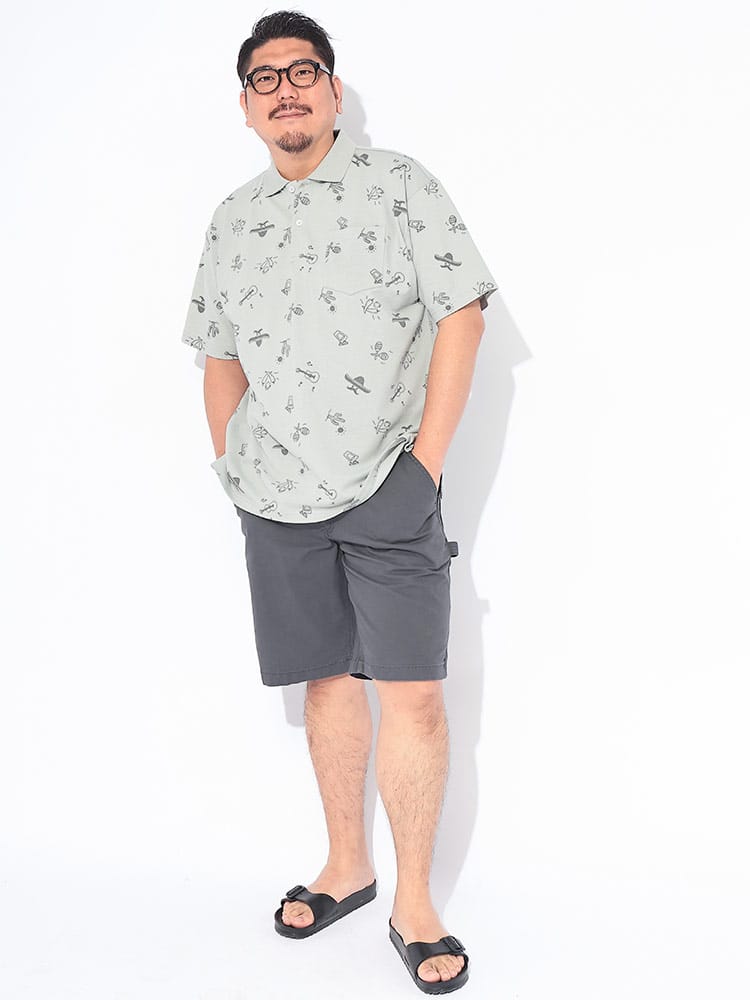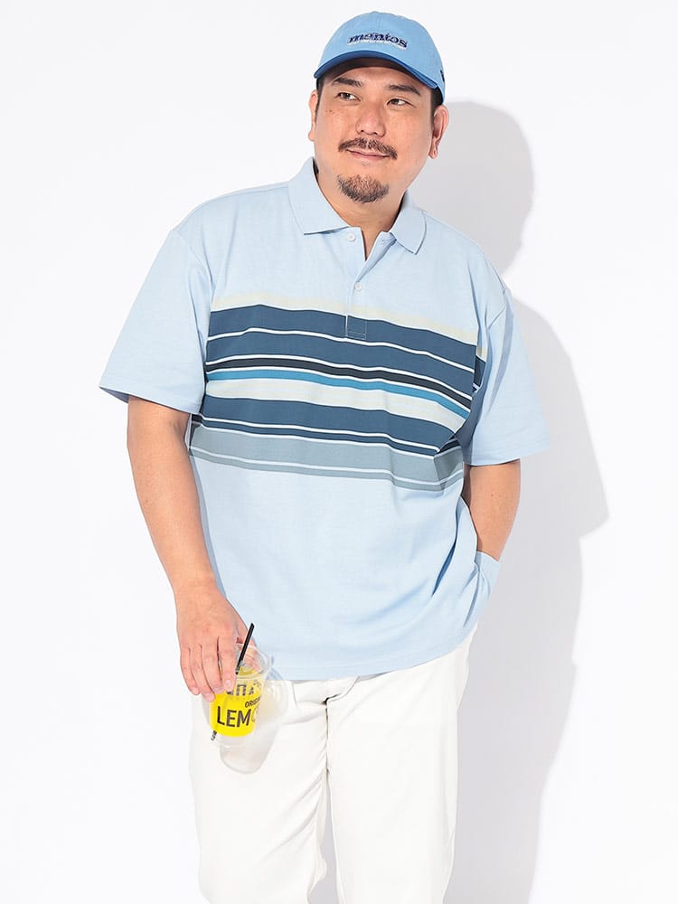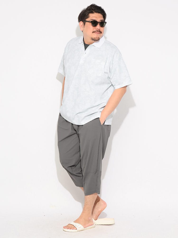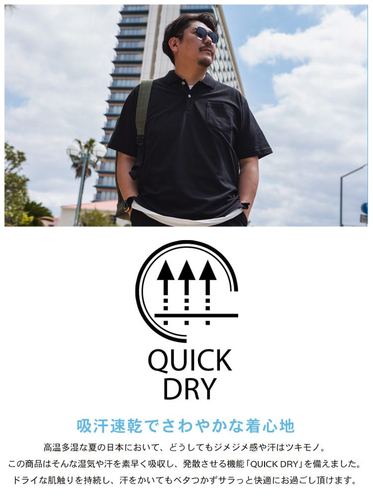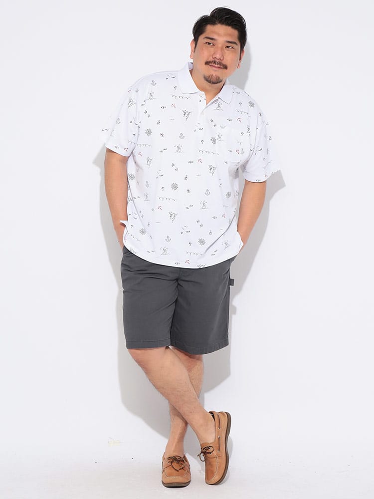 周囲と差がつくモダンなスタイルを演出する「B&T CLUB」の総柄切り替え半袖ポロシャツは、高いデザイン性と機能性を兼ね備えた春夏のマストアイテムです。肌離れの良いドライ鹿の子素材を採用し、汗をかいてもベタつきにくいドライ機能を搭載。さらにデオドラントテープを配することで、気になるニオイ対策も万全な清潔感溢れる一着に仕上げました。洗練されたプリント総柄と無地の切り替えデザインが、大きいサイズ設計ならではのゆとりあるシルエットにメリハリをプラス。便利な胸ポケットを完備し、タウンユースからゴルフなどのアクティブシーンまで幅広く活躍します。通気性と快適な着心地を両立した、大人の夏を爽やかかつ個性的に彩る主役級のポロシャツです。