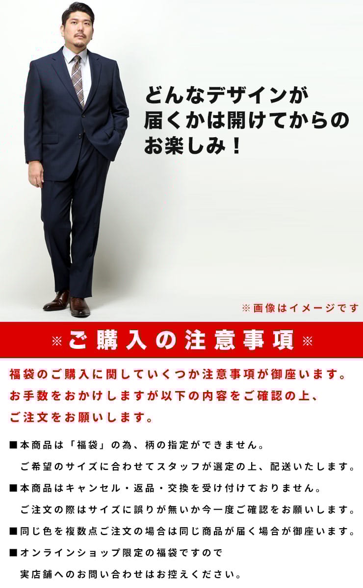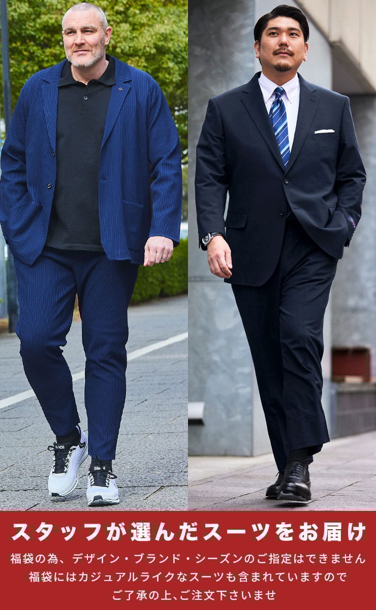 ・本商品はデザイン・ブランド・シーズンの指定はできません。ご希望のサイズよりスタッフが選定の上お届けします。尚、本福袋はシアサッカー生地スーツやデニム生地スーツ等のカジュアルライクなスーツも含まれています。