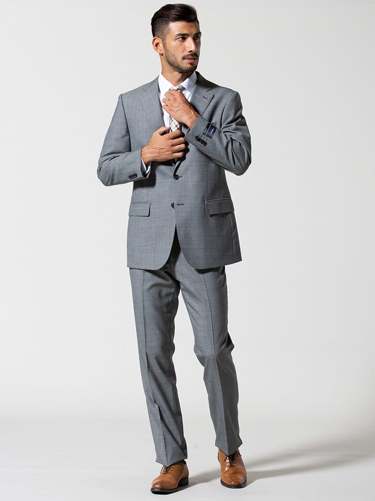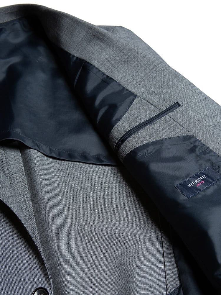 快適な着心地が嬉しいHYBRIDBIZのシングル 2ツ釦 スーツです。2WAYストレッチ素材を使用しているのでフィット感抜群。パンツはスッキリとしたノータックデザイン。ご家庭で簡単にお手入れが出来る上下ウォッシャブル機能付き。防シワ性もあるので毎日着るビジネスマンには嬉しいポイントです。ウール混の上品な生地感も魅力です。