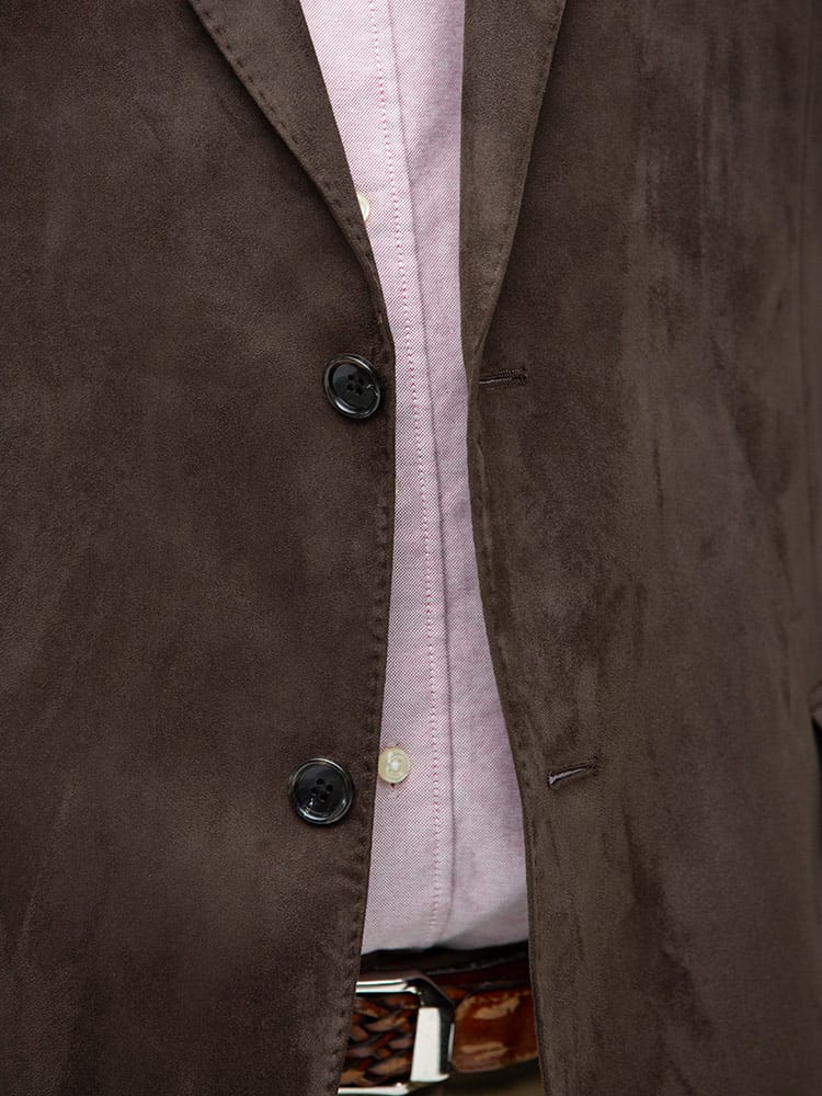 ポリスエード生地を使用したシングル 2ツ釦 ジャケットです。ベーシックなデザインでコーディネートに取り入れやすく、カジュアルなボトムスと合わせてもクールな印象で着用していただけます。暖かみのある素材で肌寒いシーズンも紳士な装いが完成します。
