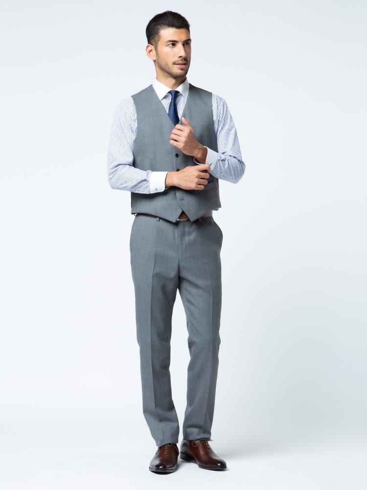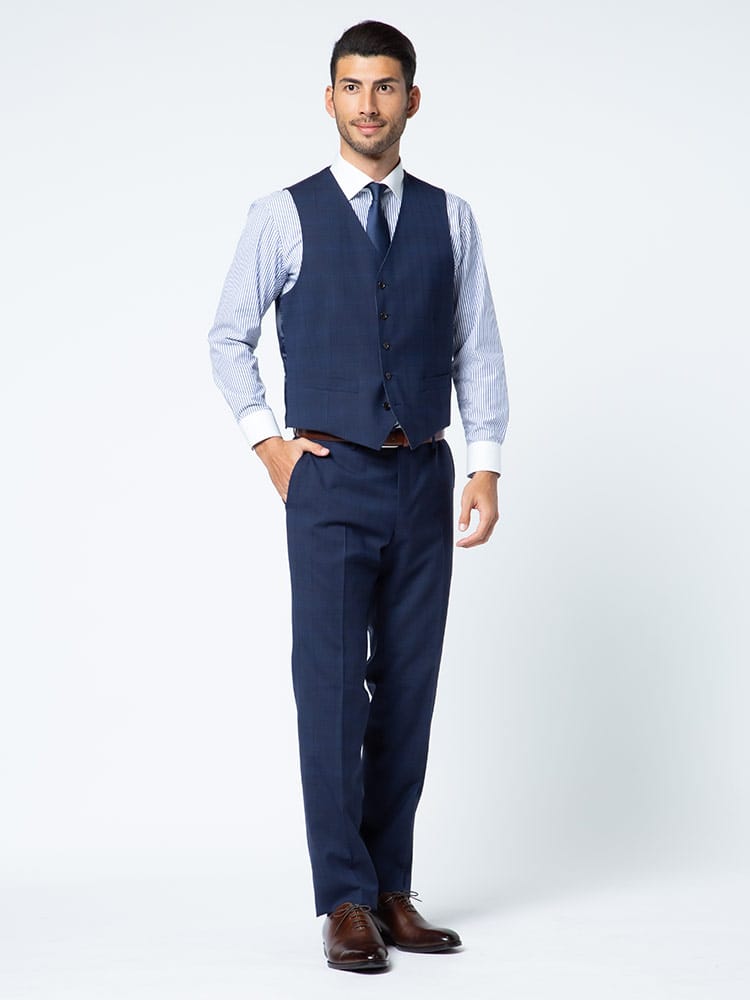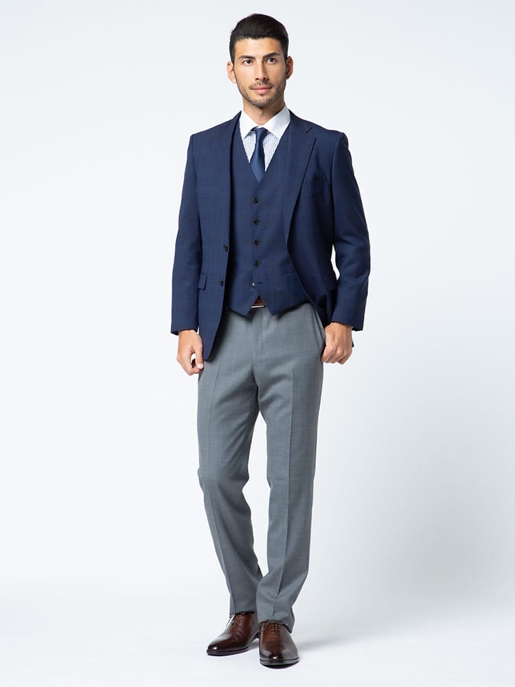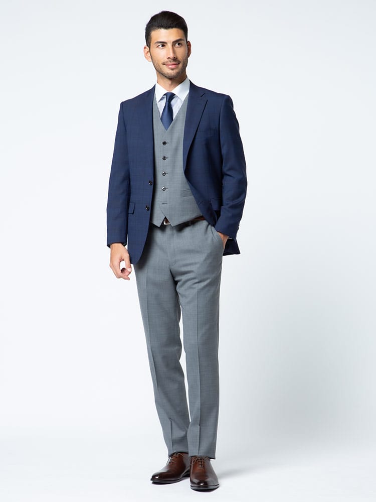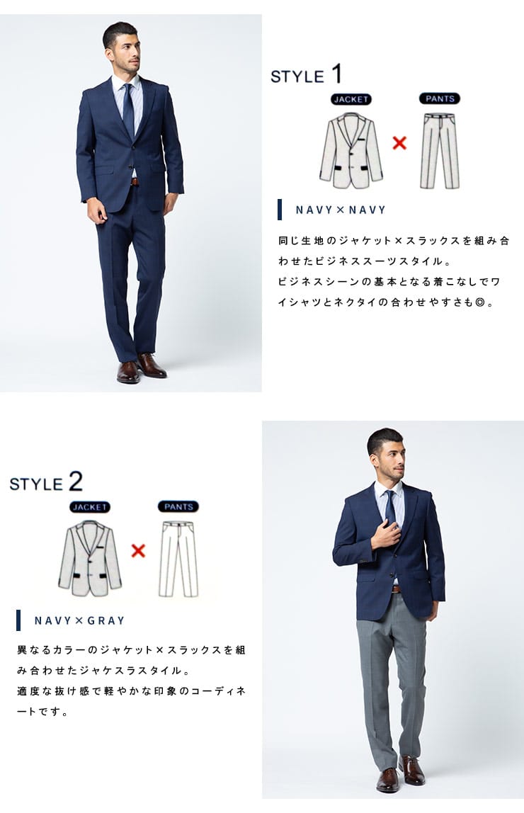 4つのアイテムで6つの着こなしが出来る「組み合わせ×スーツ」の ベスト付き シングル ツーパンツ スーツです。セット内容はシングル2つボタンジャケット、リバーシブルベスト、カラー違いのノータックスラックス×2のセットです。上下同色でスーツスタイルはもちろん、スラックスカラーを変えてジャケスラスタイルなど、1つあれば6通りの着こなしができちゃうんです!毎日気分に合わせてスタイリングを楽しめる、ビジネスマンには嬉しいアイテムになります。ビジネスからパーティーシーンなど、幅広いシチュエーションで活躍するオススメなアイテムです。