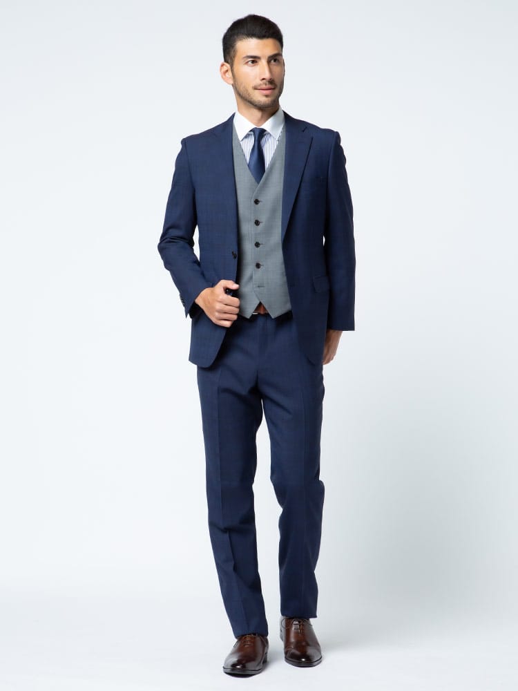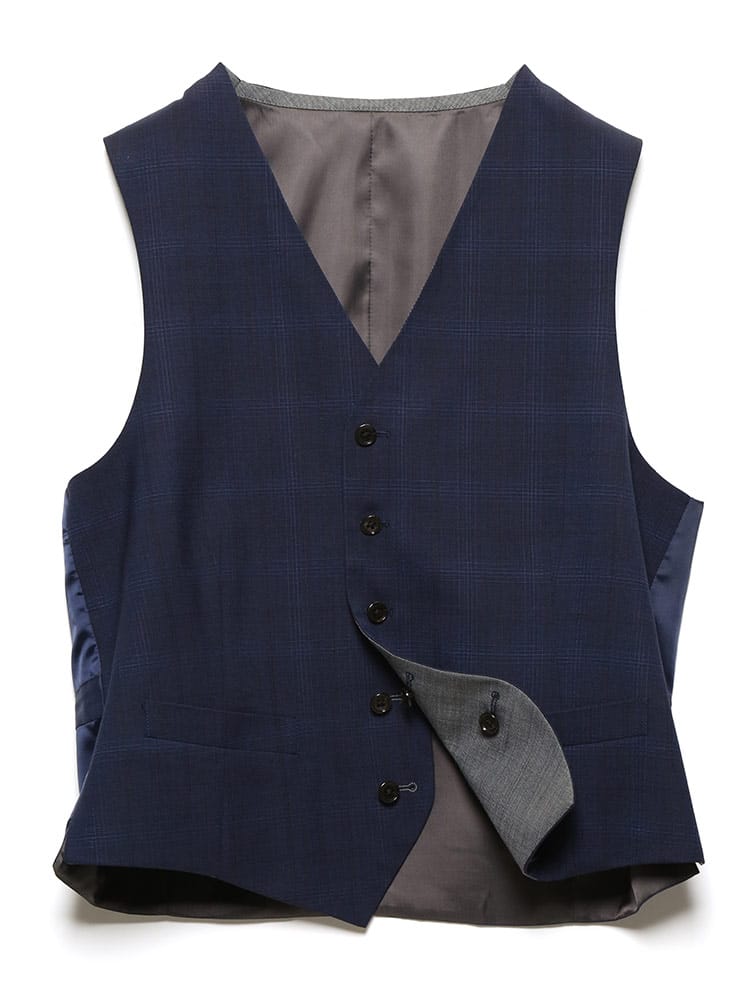 仕様 :ジャケット外側ポケット数×3つ / 内側ポケット数×2つ / シングル2つボタン / 背抜き / セッパタイプ / 額縁あり / センターベント / ベスト外側ポケット×2つ / リバーシブルベスト / パンツ外側ポケット数×4つ / ジップフライ / ノータック / ツーパンツ
