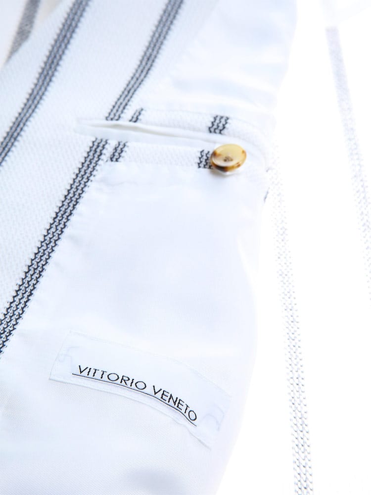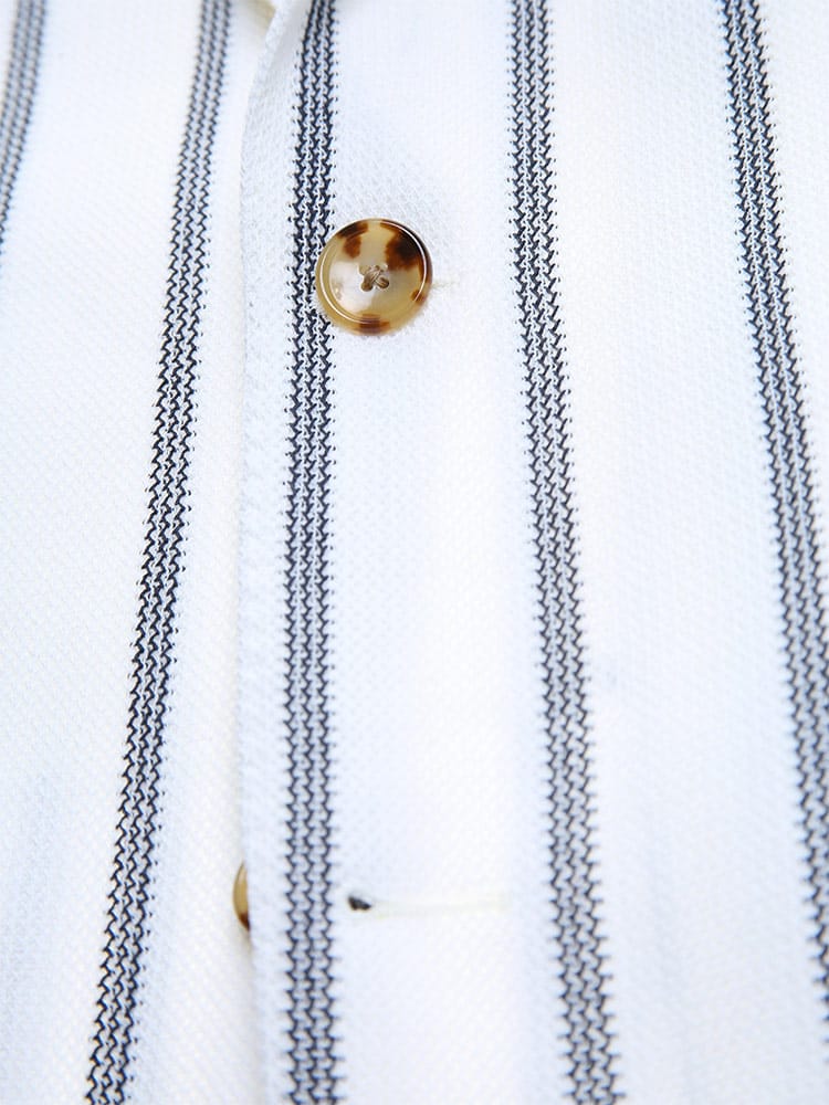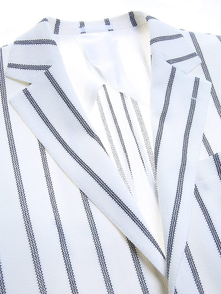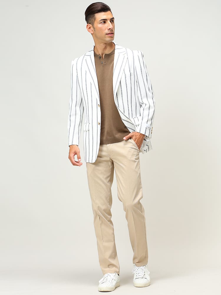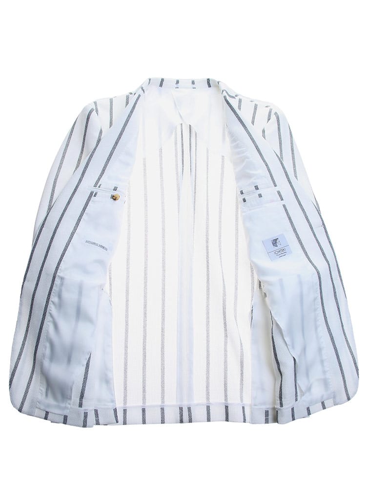 上質な和紙生地で仕上げたストライプ シングル 2ツ釦 ジャケット。繊維の産地である尾州の素材を使用した、ビジネスシーンでひとつ上をいく一着。品のあるデザインでお手持ちのパンツと合わせたジャケパンスタイルもお楽しみいただけます。
