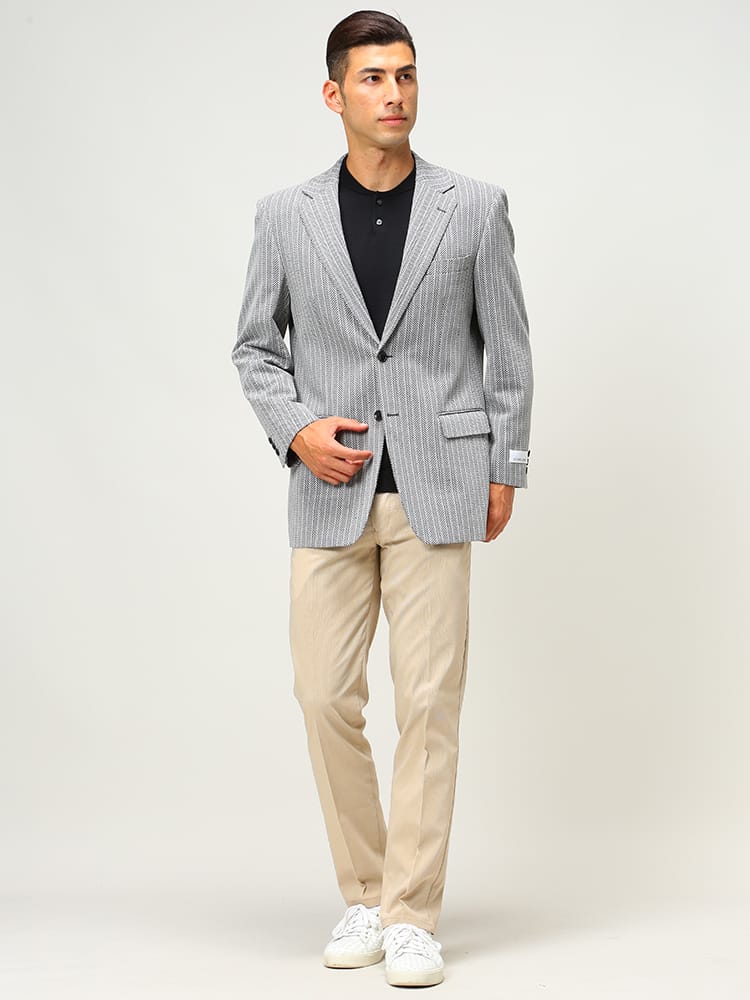 仕様 :外側ポケット数×3つ / 内側ポケット数×3つ / シングル2つボタン / 半裏 / 額縁あり / セッパタイプ / サイドベンツ