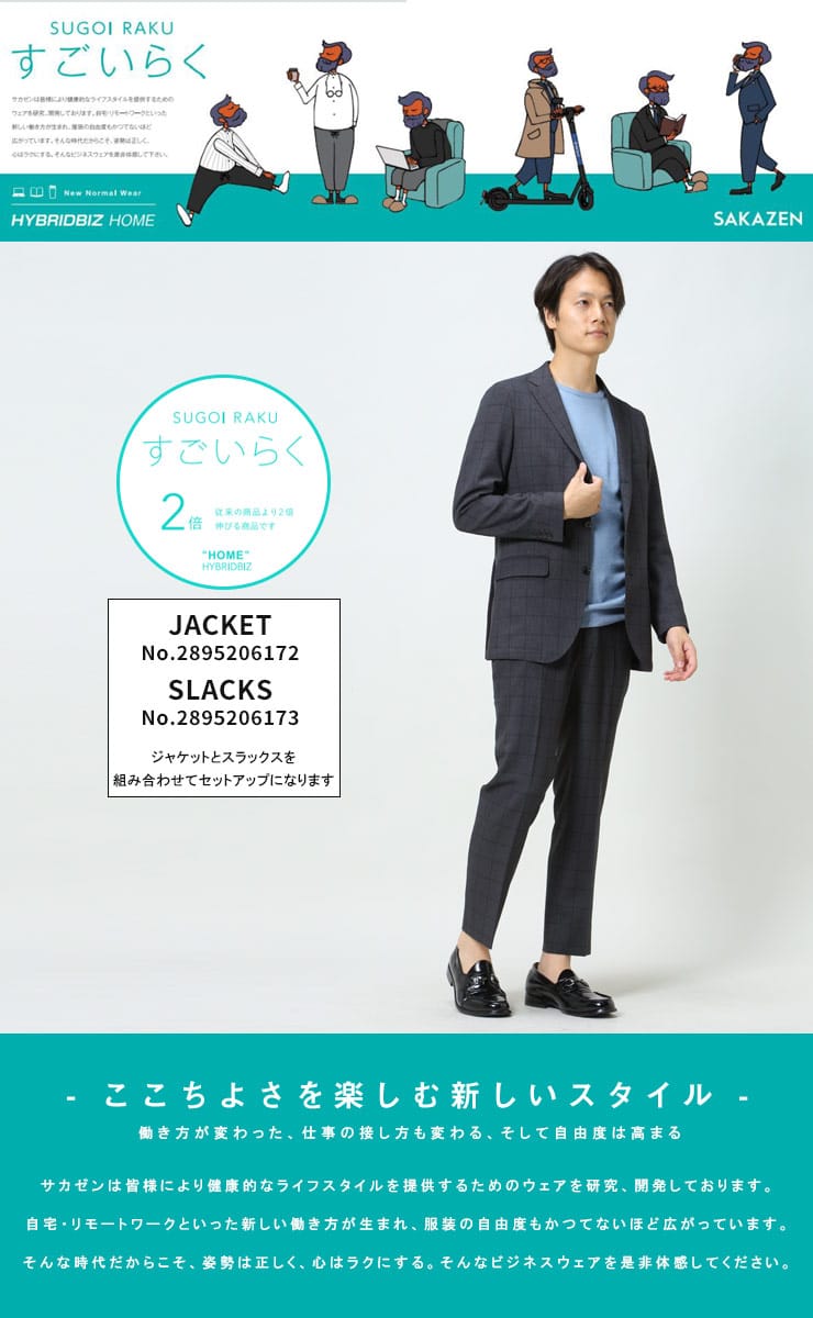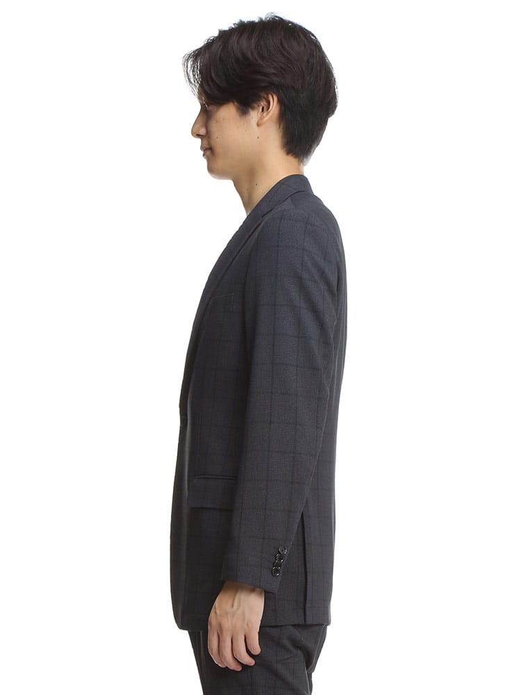 従来の商品より2倍伸びるすごいらくストレッチの千鳥格子グレンチェック シングル 2つ釦 ジャケットです。千鳥格子グレンチェックの柄が、品のあるカジュアルさを演出。上品なデザインで幅広いパンツと相性抜群でスラックスと合わせたジャケパンスタイルにもおすすめです。