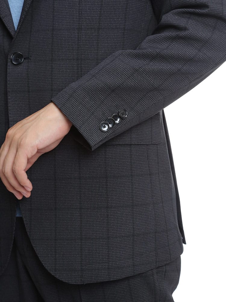 仕様 :外側ポケット数×3つ / 内側ポケット数×2つ / シングル段返り3つボタン / 半裏 / サイドベンツ / セッパタイプ / 額縁あり
