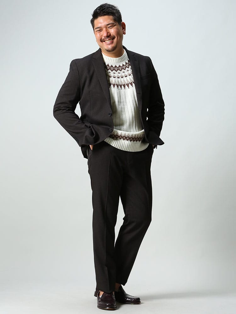 | モデルデータ | 身長:188cm / B:112 / W:95 / H:110 / S:29.0cm |