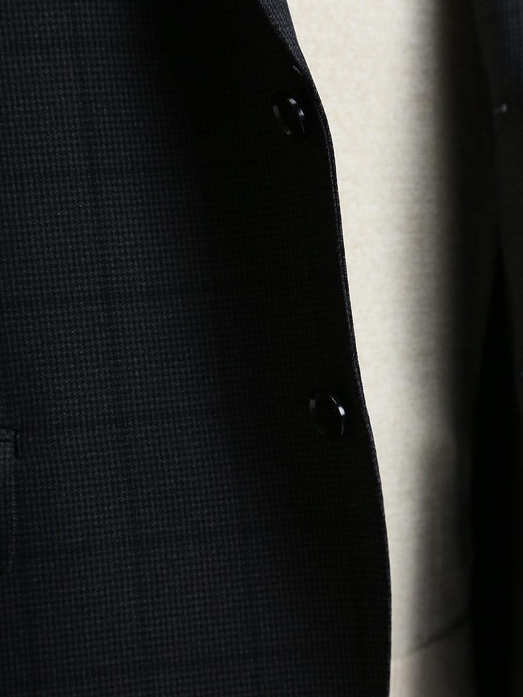 仕様 :外側ポケット数×3つ / 内側ポケット数×2つ / シングル段返り3つボタン / 半裏 / サイドベンツ / セッパタイプ / 額縁あり