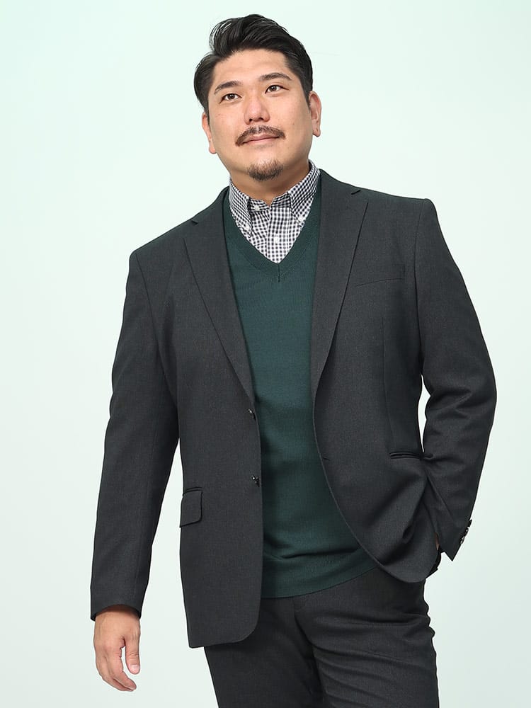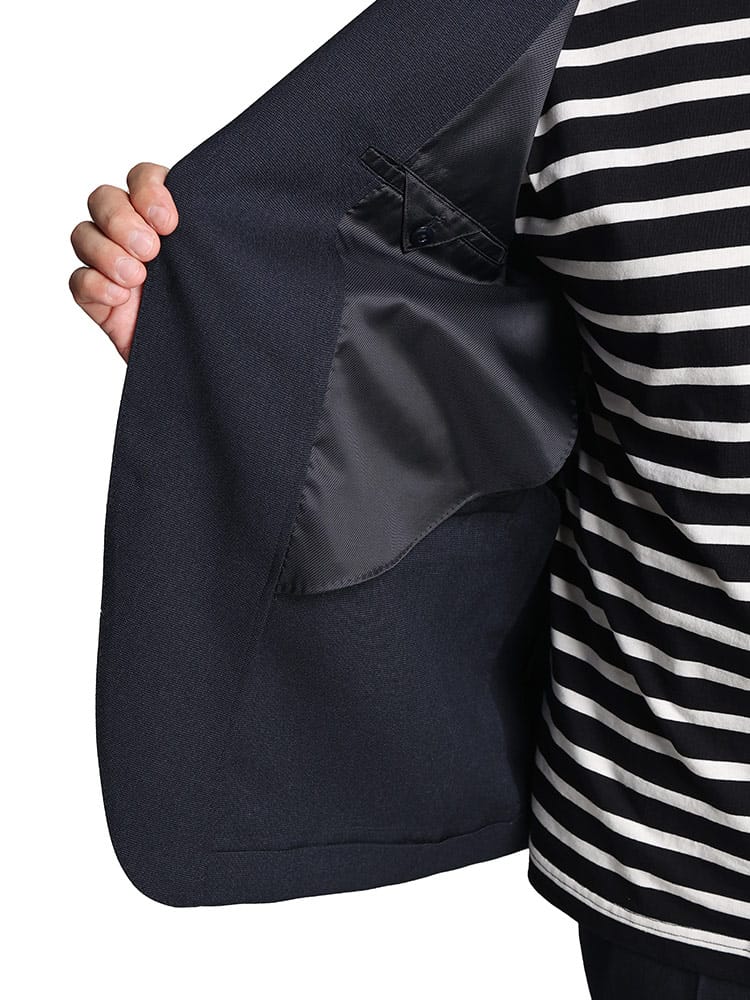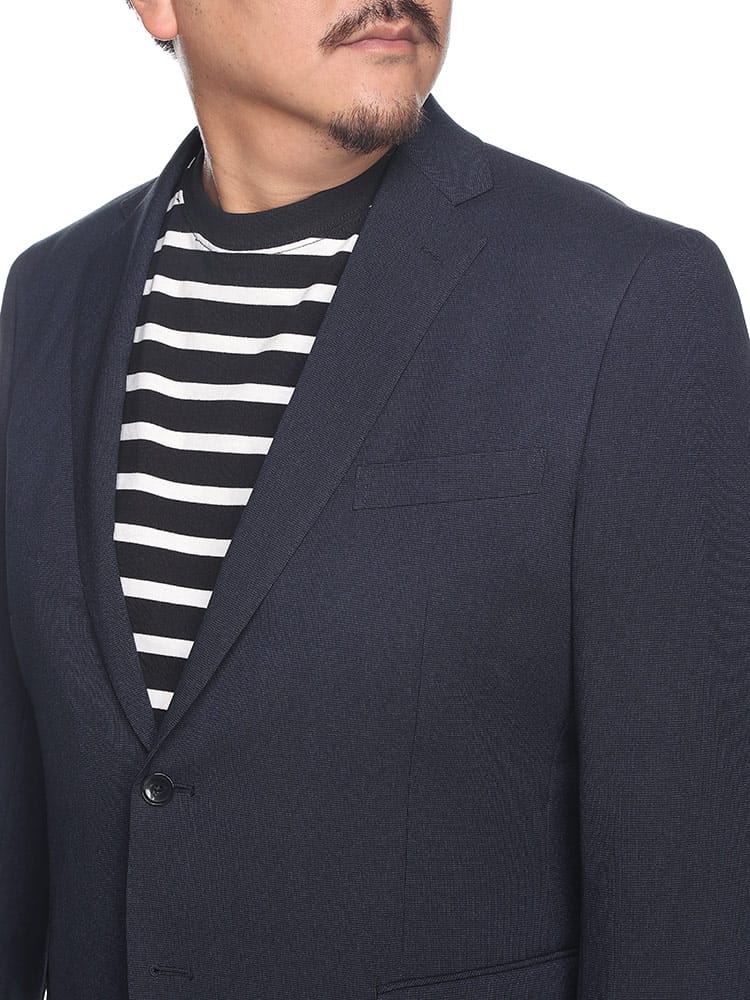 仕様 :外側ポケット数×3つ / 内側ポケット数×3つ / シングル2つボタン / サイドベンツ / 半裏 / ストレッチ