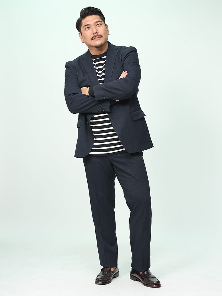 | モデルデータ | 身長:188cm / B:112 / W:95 / H:110 / S:29.0cm |