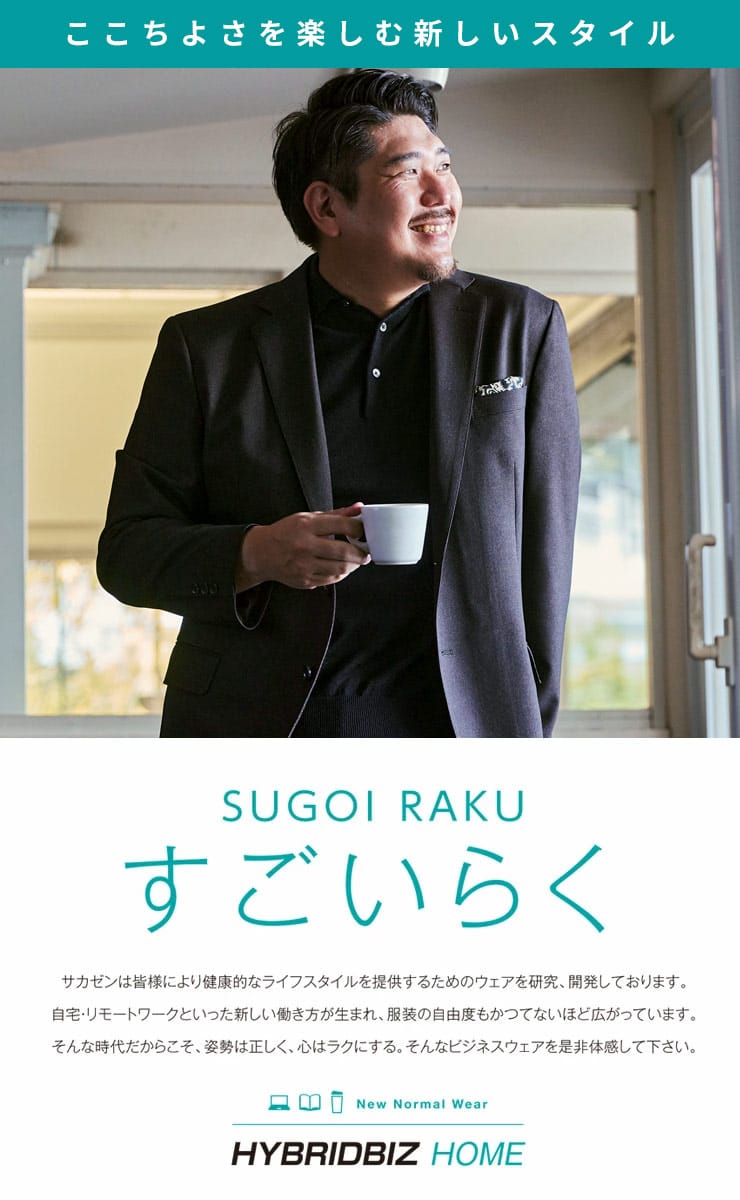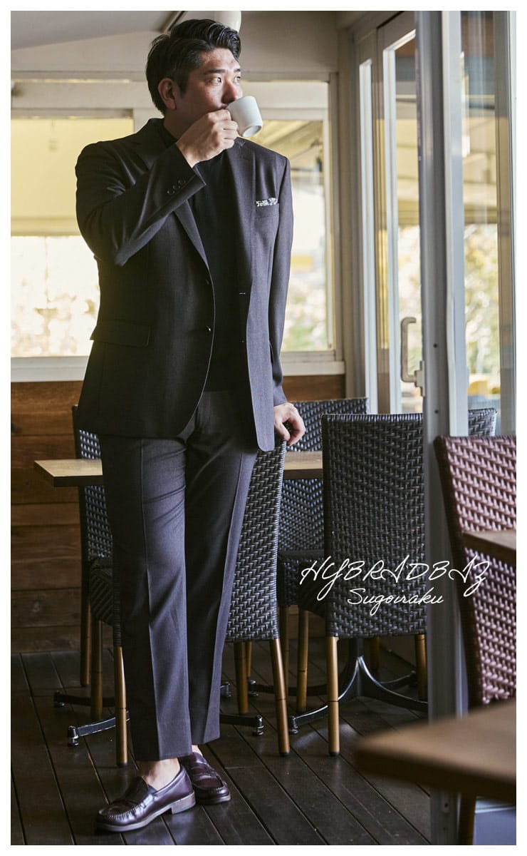従来の商品より2倍伸びる「すごいらくシリーズ」のHYBRIDBIZハイブリッドビズのシングル 2ツ釦 ジャケット。快適さとスタイルを両立したメンズビジネスアウターです。テーラードジャケットとしての洗練されたデザインに加え、着用時の動きやすさを考慮し、ストレッチ素材を使用しています。外側ポケットが3つあり、携帯電話や小物などの収納に便利です。さらに内側ポケットが2つ装備されており、大切な書類や貴重品をしっかり保管できます。シングル2つボタンは、エレガントな印象を与えながらも、自然な動きをサポートします。半裏仕様なので、通気性も良く、長時間の着用でも快適です。サイドベンツとセッパタイプのデザインは、よりスマートなシルエットを演出します。また、額縁なしのスタイリングで、モダンかつミニマルな印象を与えます。HYBRIDBIZハイブリッドビズのストレッチ2ツ釦ジャケットは、ビジネスシーンにふさわしい品格を備えながら、快適な着心地を提供します。どんなシーンにも対応できる万能なアウターです。