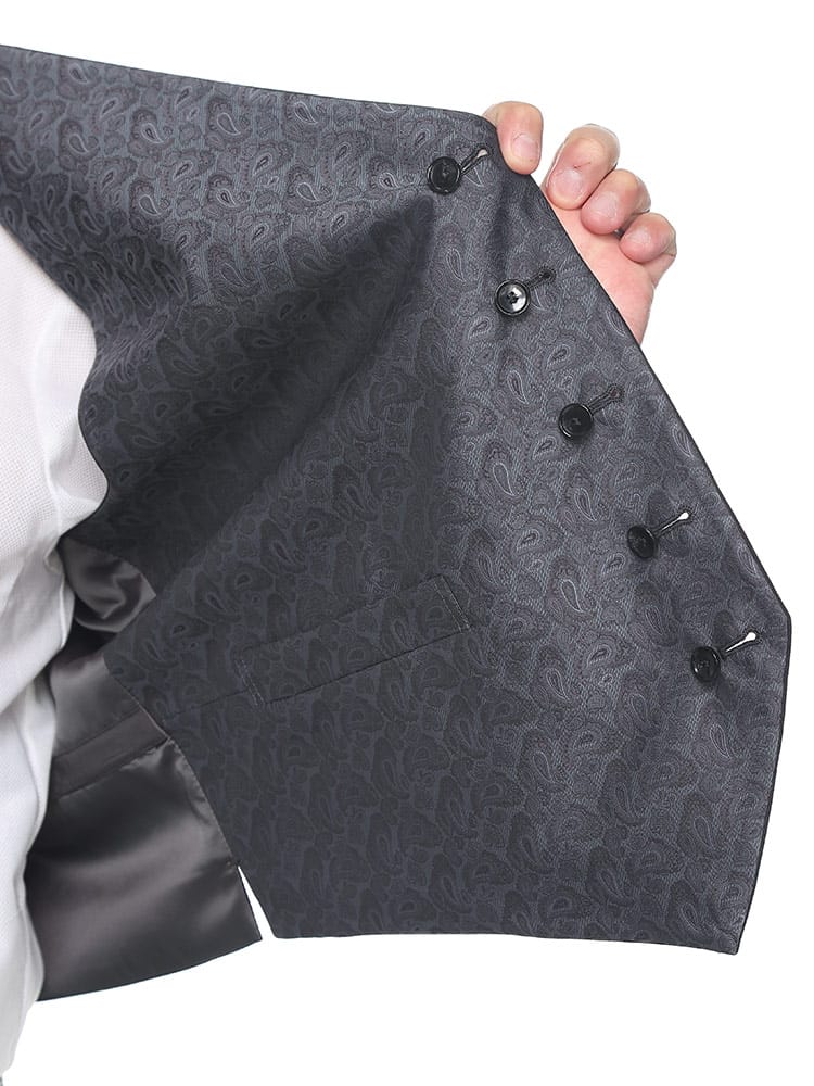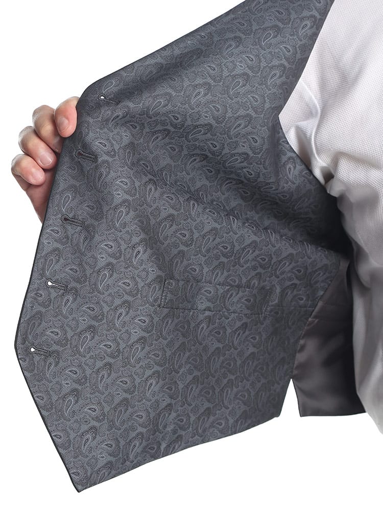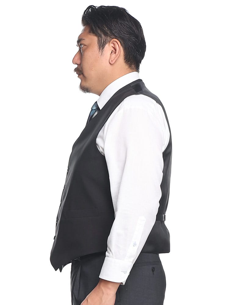 表裏で表情が違うリバーシブルベスト。無地と柄の2つの表情がをもち、シーンに合わせた着こなしができます。表地は無地でベーシックで使いやすく、裏地はペイズリー柄でパーティーなどでアクセントのある着こなしを楽しめます。リバーシブルとなっているので冠婚葬祭と様々な場面にも使用可能。両面共に後ろのベルトでサイズ調整可能です。ポリエステル使用の光沢があり、綺麗な仕上がり。結婚式やパーティーにおすすめです。