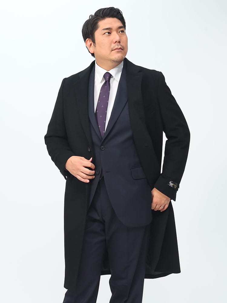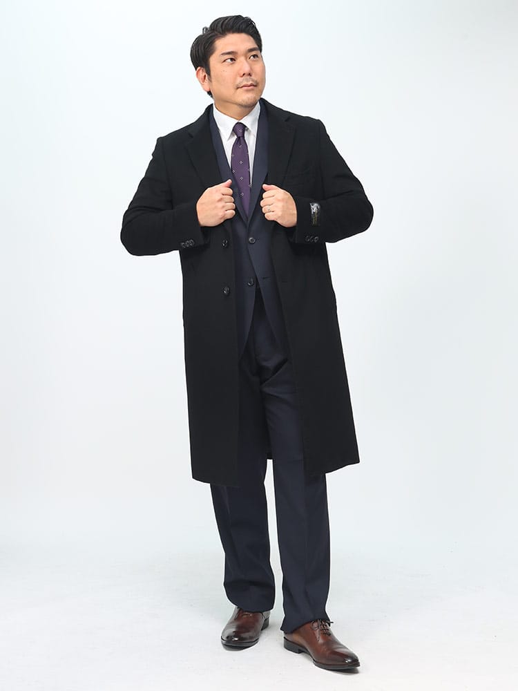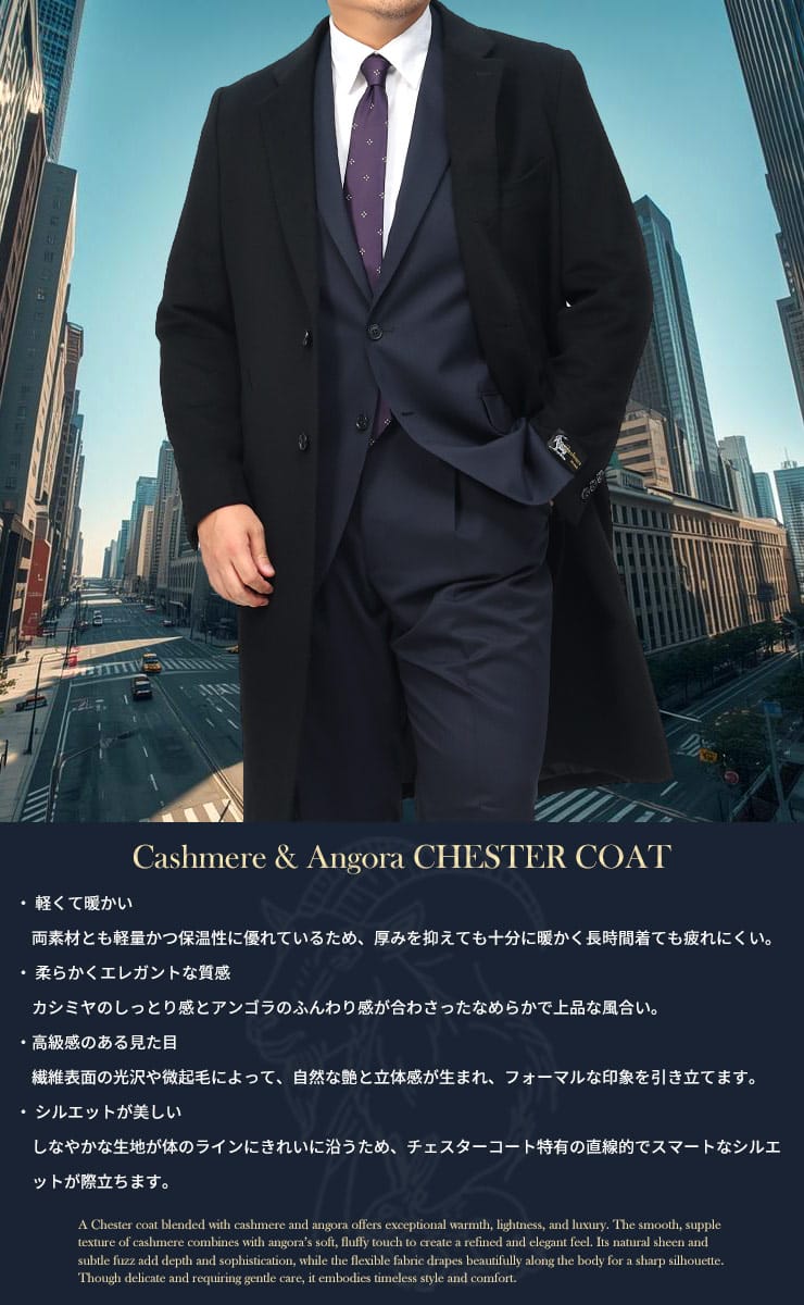 カシミヤとアンゴラの混紡素材を使用したロングチェスターコートは、ビジネスシーンにふさわしい上品なウールコートです。この素材は暖かく、かつ軽量で肌触りが良いことが特徴。シンプルでタイムレスなデザインは、フォーマルなスーツスタイルに洗練された印象を加えます。冬の寒さをしのぎながら、エレガントな外観を保つための理想的な選択です。