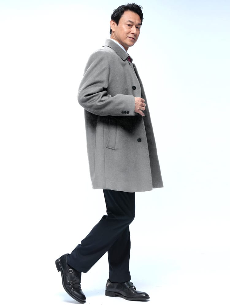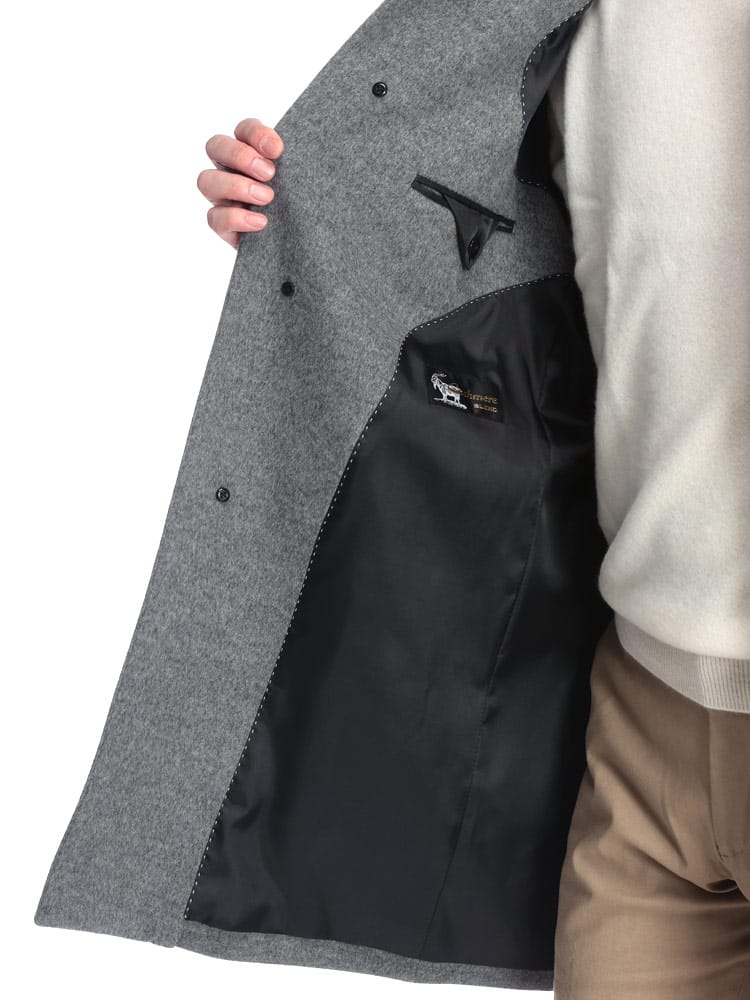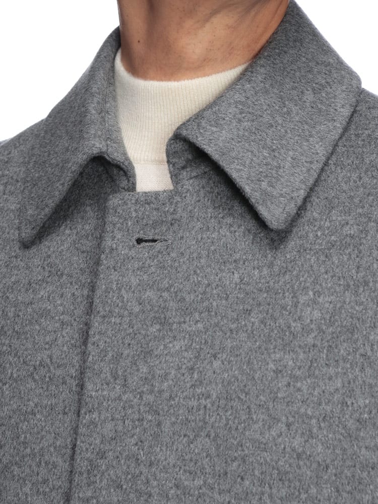 ウールをメイン素材とし、カシミヤとアンゴラをブレンドしたセッティングハーフコートは、暖かさと柔らかさを兼ね備えています。セッティングハーフは、着丈が腰までのコートを指し、この組み合わせの素材は、上品な質感と独特の光沢感を持っています。冬の寒さを快適に過ごすためのスタイリッシュな選択です。