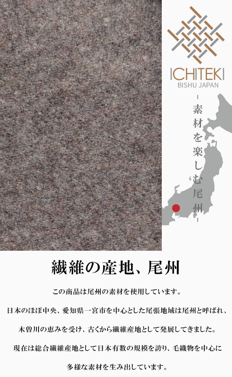ICHITEKI(イチテキ)は、日本有数の繊維産地である尾州(愛知県)で生まれたブランドです。尾州の伝統的な技術と高品質な素材を活かし、シンプルで洗練されたデザインを提案しています。