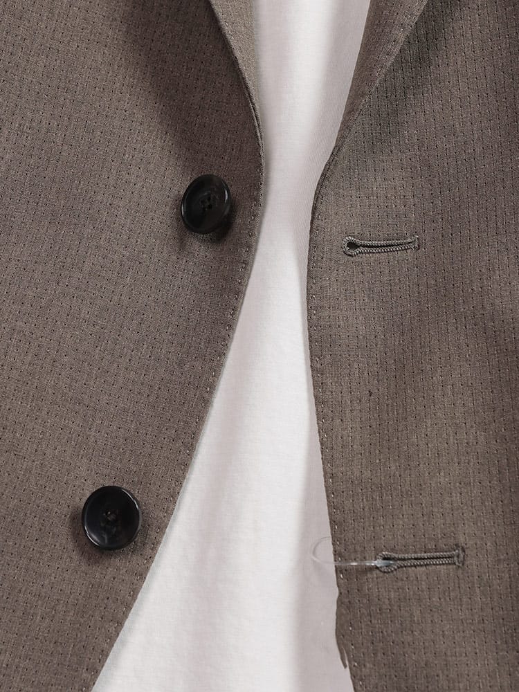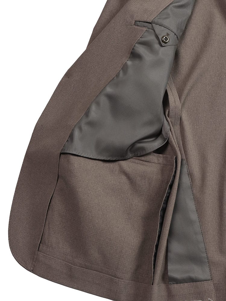 仕様 :外側ポケット×3つ / 内側ポケット数×2つ / シングル2つボタン / 半裏 / セッパタイプ / 額縁なし / サイドベンツ / 軽量 / ストレッチ
