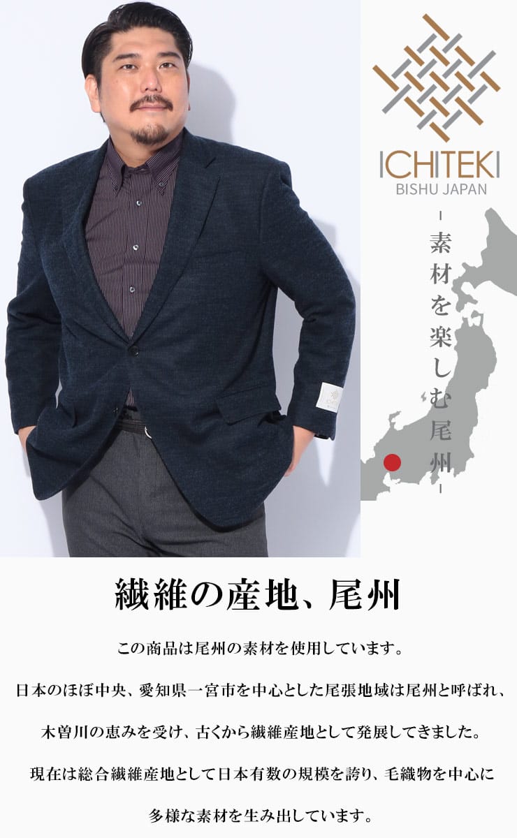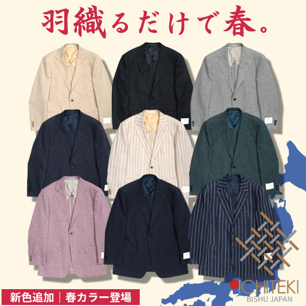 | that's ICHITEKI 日本屈指のテキスタイルメーカー「イチテキ」の高級生地を使用した、こだわり満載のテーラードジャケット。 ビジネスから休日のきれいめスタイルまで、羽織るだけで大人の品格を漂わせるこだわりの一着です。 >> ICHITEKIジャケット一覧はこちら |